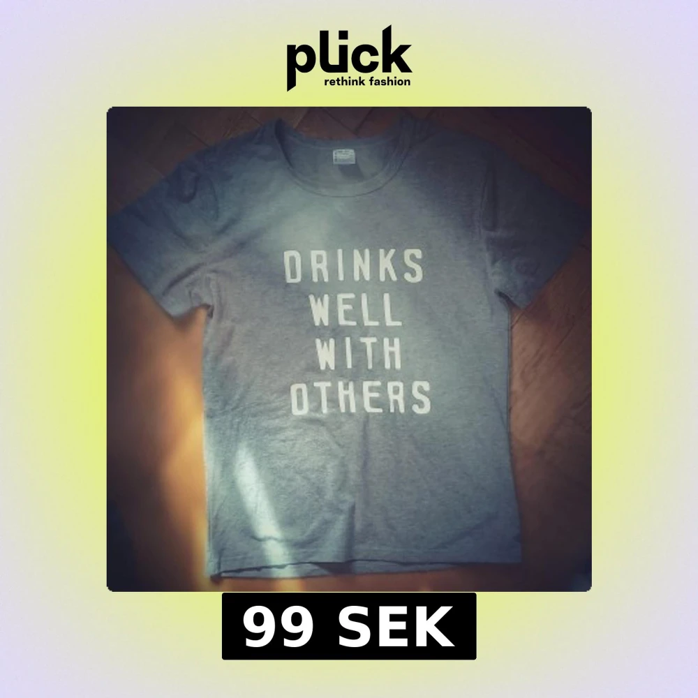 Grå t-shirt med vit text 'DRINKS WELL WITH OTHERS' på framsidan. Klassisk rund halsringning och korta ärmar. Perfekt för en avslappnad och skön stil.