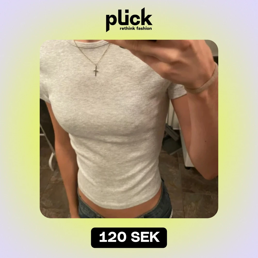 Ljusgrå tajtshirt Köpt på bershka i Barcelona Knappt använd Storlek M men passar nog S/ XS