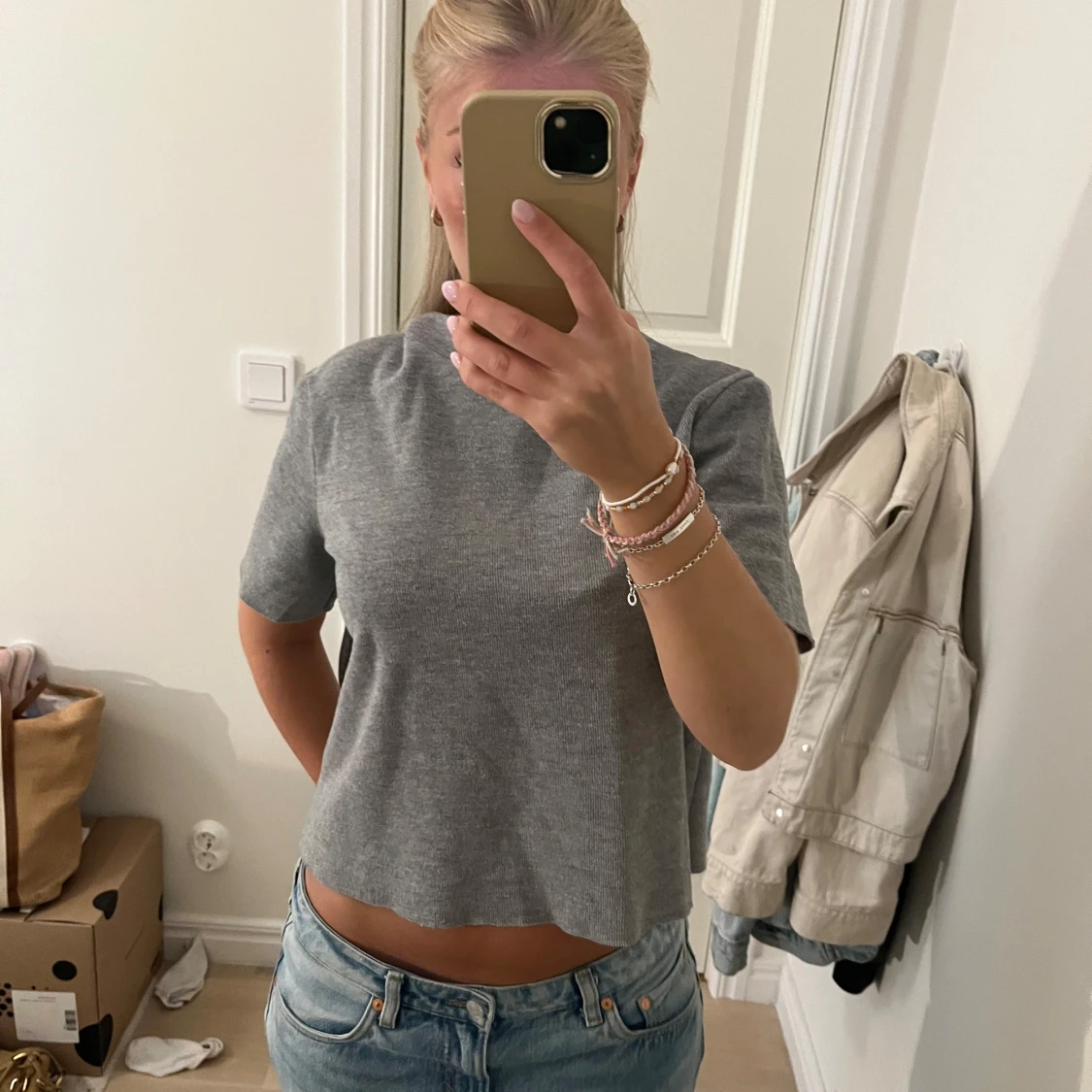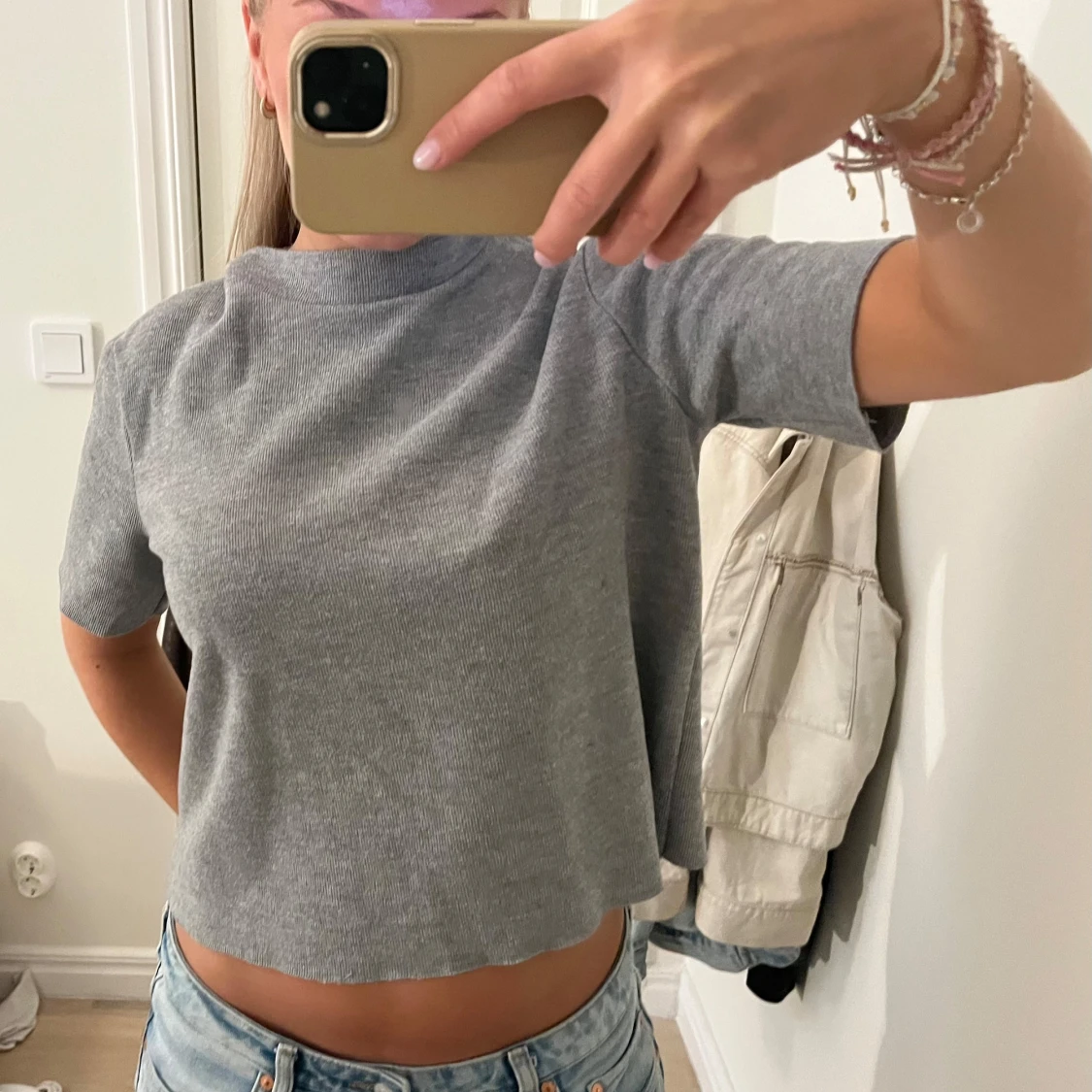 Så fin kortärmad grå tröja som är lite polo!🤩