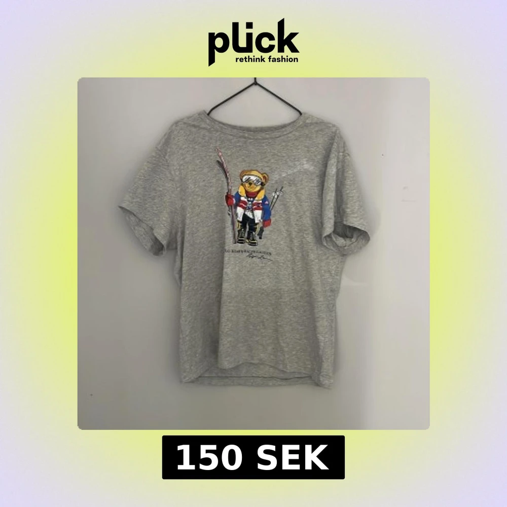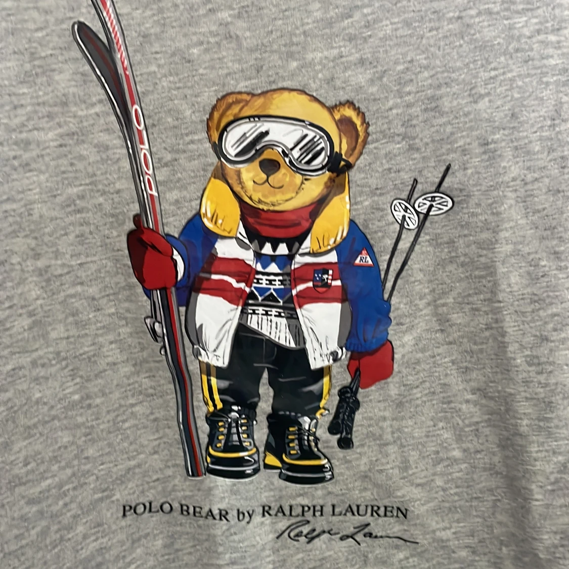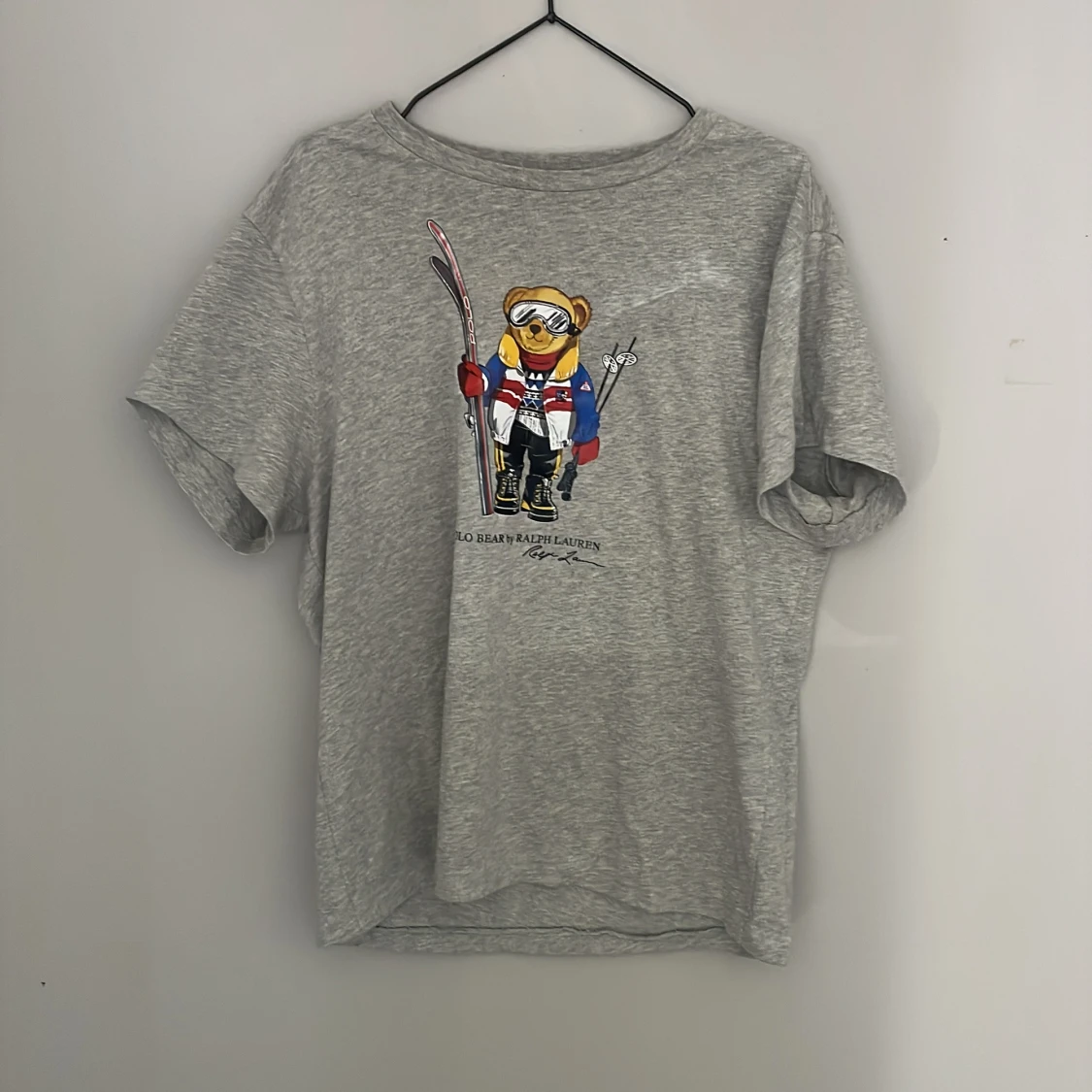 Säljer en grå t-shirt från Ralph Lauren med en cool Polo Bear-tryck på magen tröjan är i ett topp skick. Passar som en vanlig M i storleken