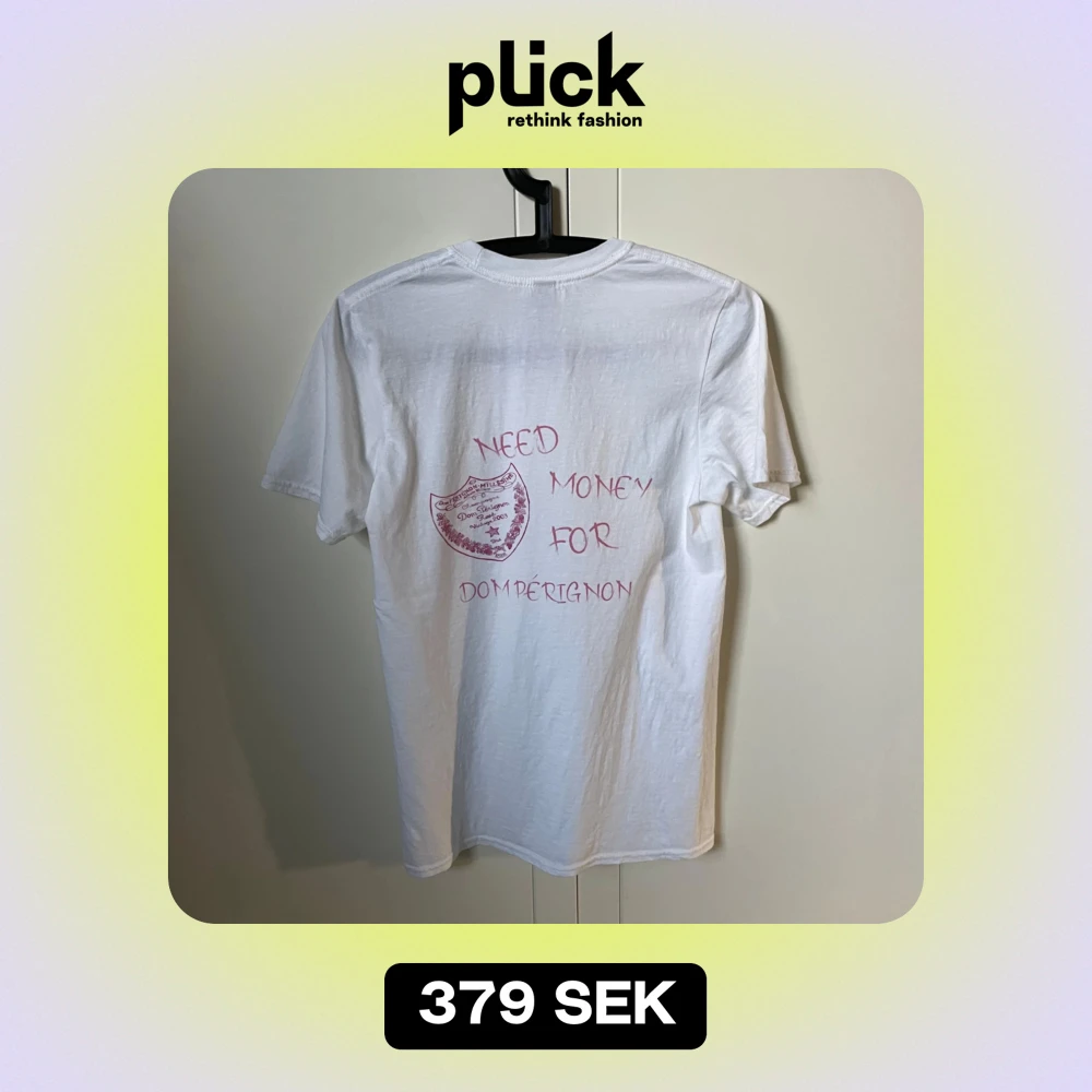 Tja säljer nu denna sköna ”Need money for dom perignon” tshirt. Använd 1 gång! Allmänt skön tischa med skönt tryck! Bara att fråga vid eventuella funderingar mvh