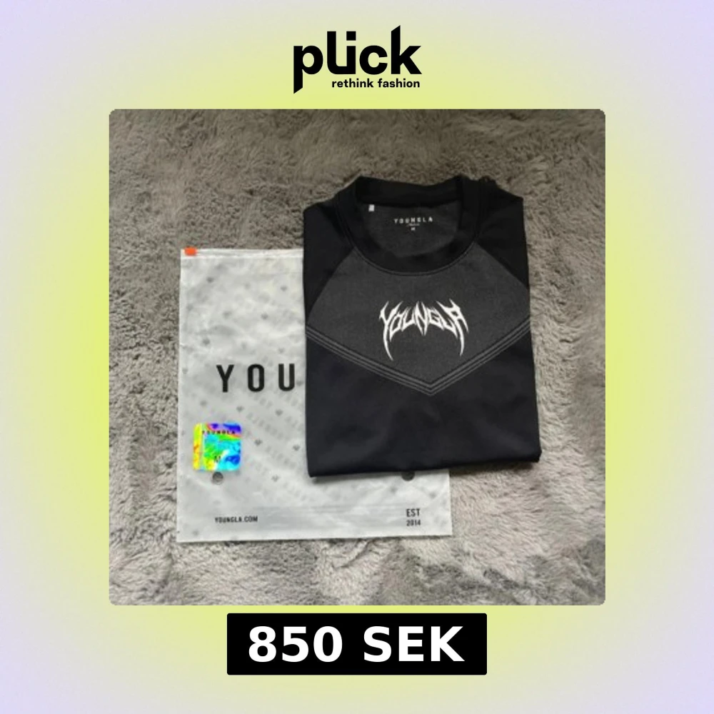 Säljer en svart t-shirt från YoungLA med gråa grafiska detaljer och ett vitt tryck på bröstet. T-shirten har korta ärmar, rund halsringning och är tillverkad i ett stretchigt material som passar perfekt till träning. Tröjan är mycket limiterad och säljs då den inte passade.