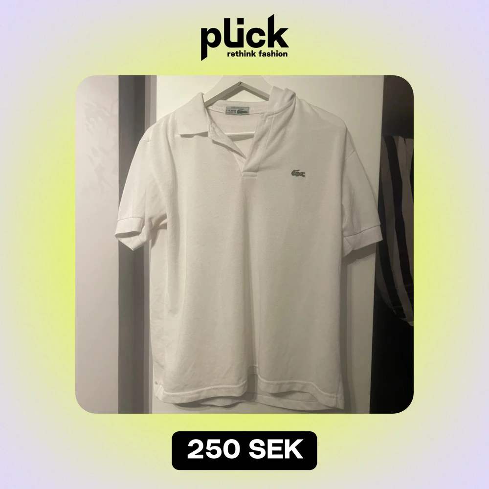Säljer en klassisk vit pikétröja från Lacoste med den ikoniska krokodilloggan på bröstet. Tröjan har korta ärmar och en stilren krage. Perfekt för en avslappnad och stilren look.