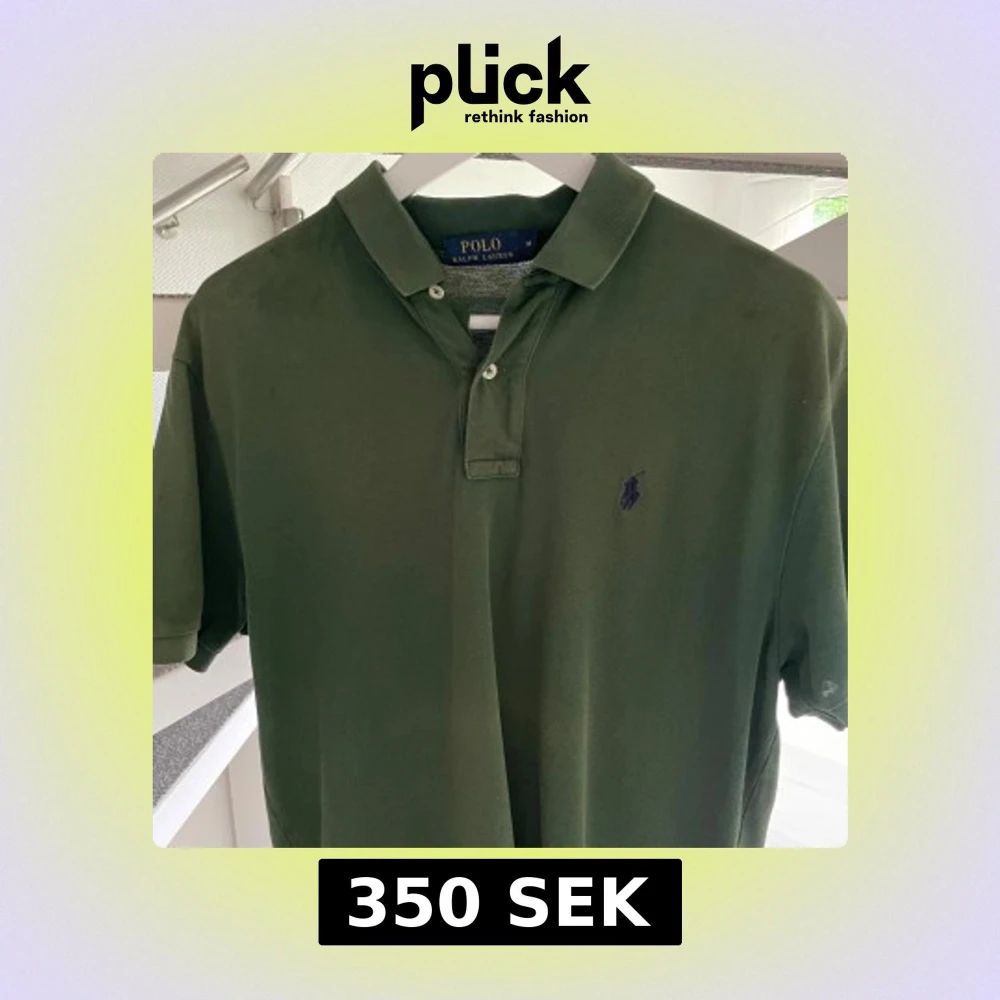 Klassisk grön pikétröja från Polo Ralph Lauren med broderad logga i blått på bröstet. Tröjan har korta ärmar, krage och knäppning med två knappar framtill. Perfekt för en stilren och avslappnad look. Den är i storleken M och är slimfit . Priset är ej hugget i sten!