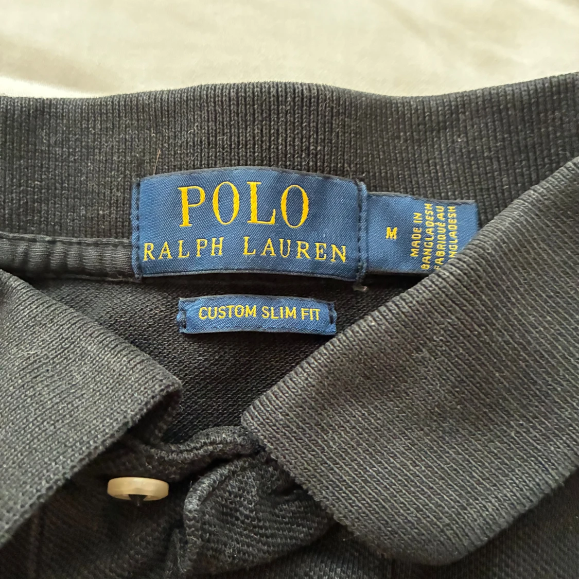 Svart polo ralph lauren pike, väldigt snygg och passar till allt, det är mycket bra skick på den!