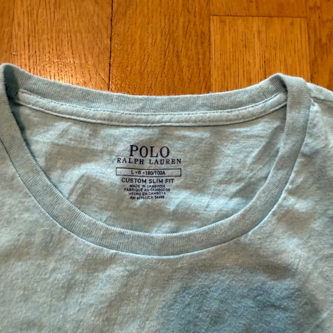 Snygg ljusblå t-shirt från Polo Ralph Lauren med klassisk rund hals och broderad logga på bröstet. Modellen är slim fit och tillverkad i mjuk bomull, perfekt för en clean och stilren look.