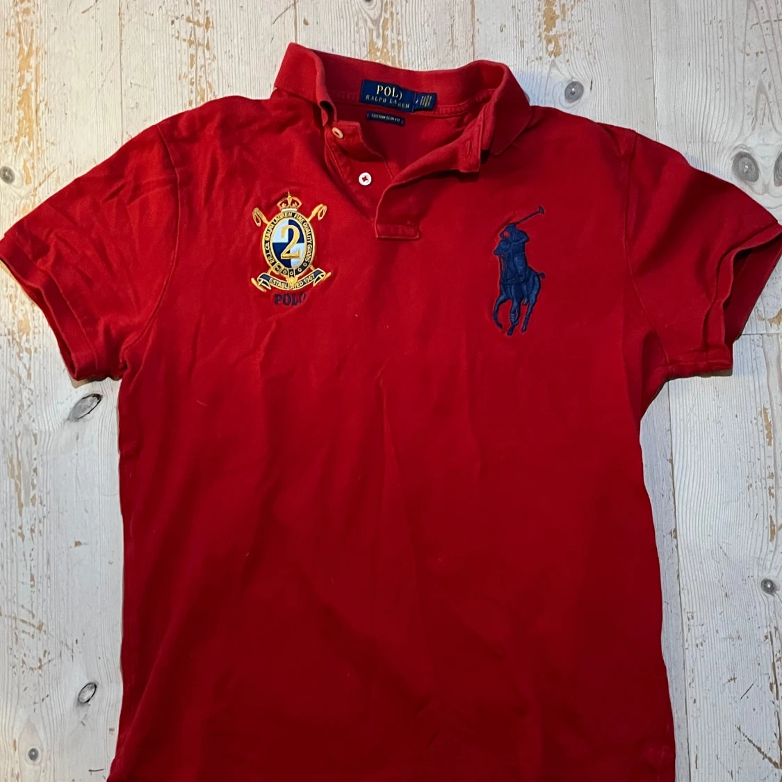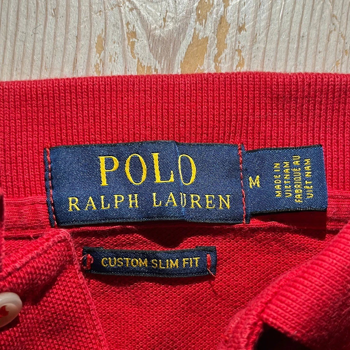 Röd piké-tröja från Polo Ralph Lauren i custom slim fit med klassisk krage och broderad logga på bröstet. Använd fåtal gånger. Nypris 2100. Pris kan diskuteras vid snabb affär.