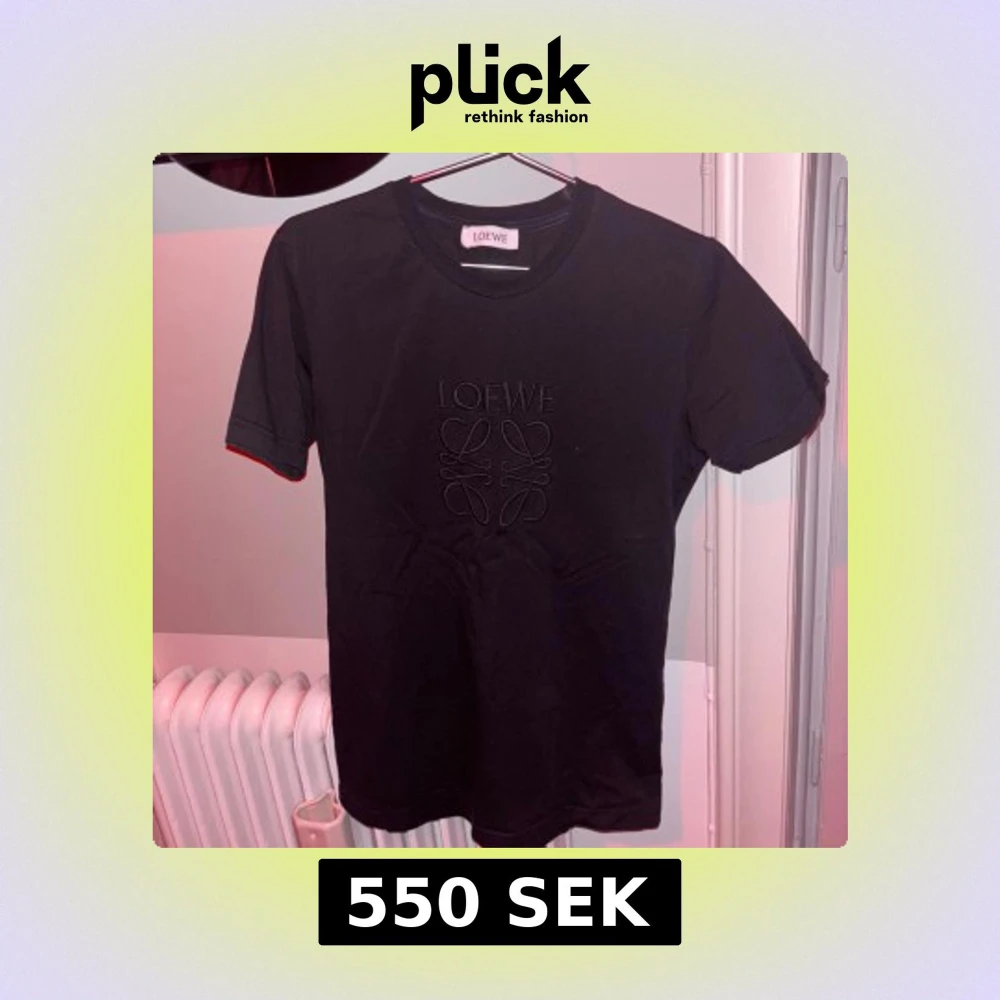 Säljer en svart t-shirt från Loewe med broderad Loewe-logga framtill. T-shirten har rund halsringning och korta ärmar. Perfekt för en clean och stilren look.