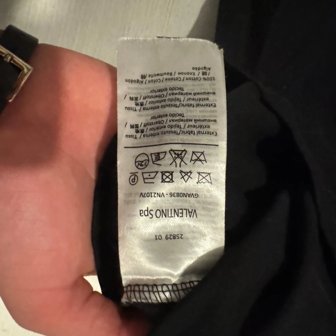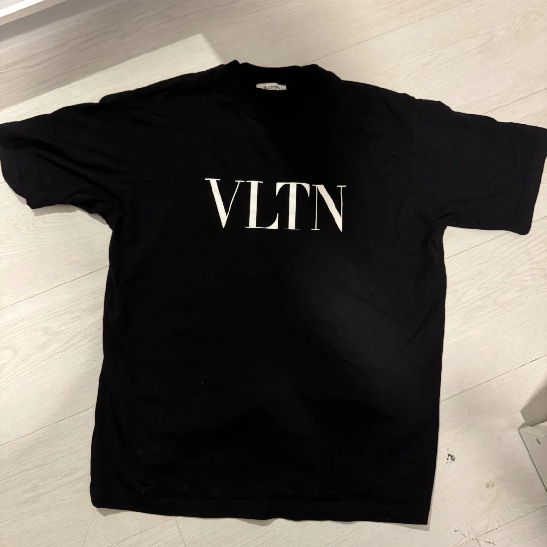 Svart t-shirt från Valentino med VLTN-tryck i vitt på bröstet. Klassisk passform med korta ärmar och rund halsringning. Tillverkad i 100% bomull för en skön och mjuk känsla. Perfekt för dig som gillar stilrena designer och exklusiva märken. Storlek S sitter som M