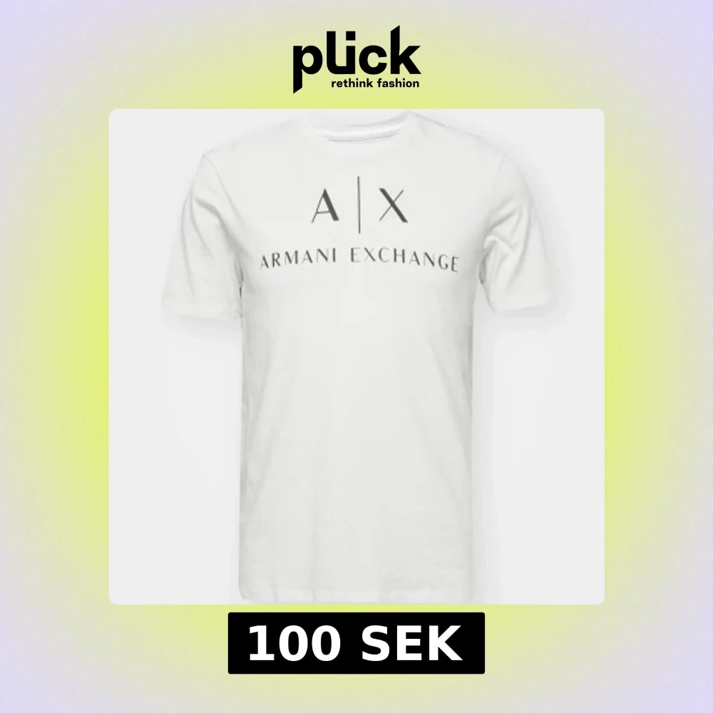 Vit t-shirt från Armani Exchange med svart logotyptryck framtill. Klassisk rund hals och korta ärmar. Tillverkad i mjuk bomull för en skön och avslappnad passform. Perfekt för en clean och stilren look.