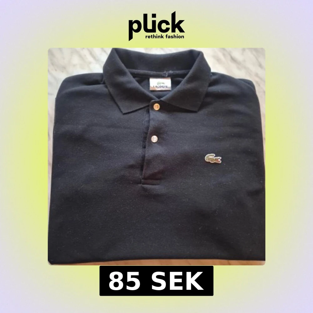 Svart pikétröja från Lacoste med klassisk krage och två vita knappar framtill. Skick : 9/10