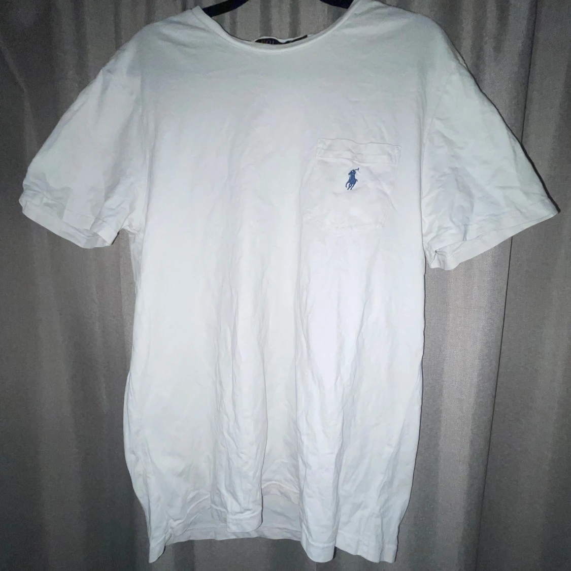Klassisk vit t-shirt från Ralph Lauren med en liten blå broderad logga på bröstfickan. Den är nytt skick aldrig andvänd!! ( nypris är ungefär 500kr mitt pris 300kr priset är ej hugget k sten) 👍🏼🥂