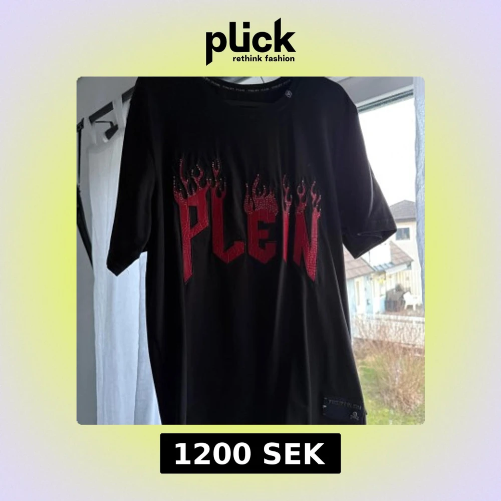 Snygg svart t-shirt från Philipp Plein med röd text och flammor på framsidan. Knappt använd så väldigt gott skick