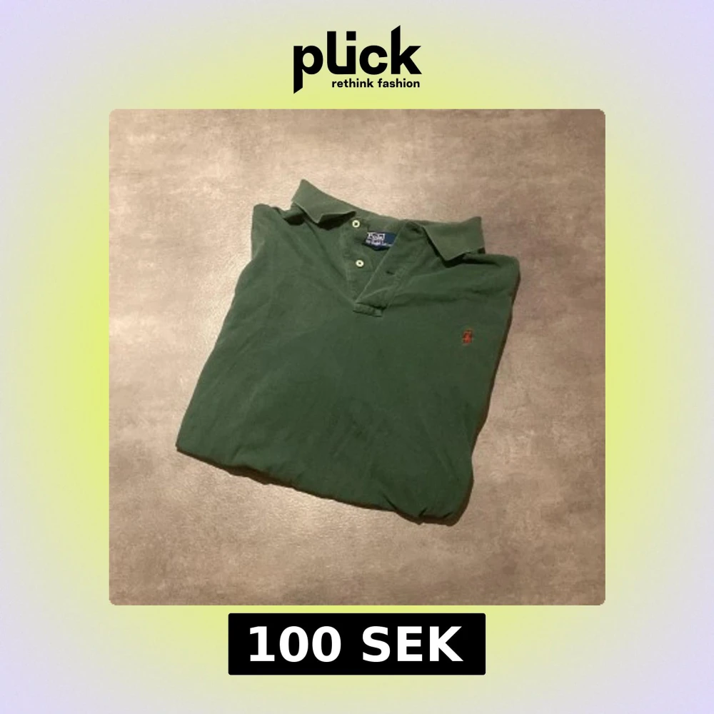 Klassisk grön pikétröja från Polo Ralph Lauren med röd broderad logga på bröstet. Tröjan har korta ärmar, krage och knappar vid halsen. Perfekt för en avslappnad och stilren look. Tröjan är i storlek 2XB och är lite blekt. Tröjan är väldigt stor😁 det är bara att höra av sig vid frågor👍