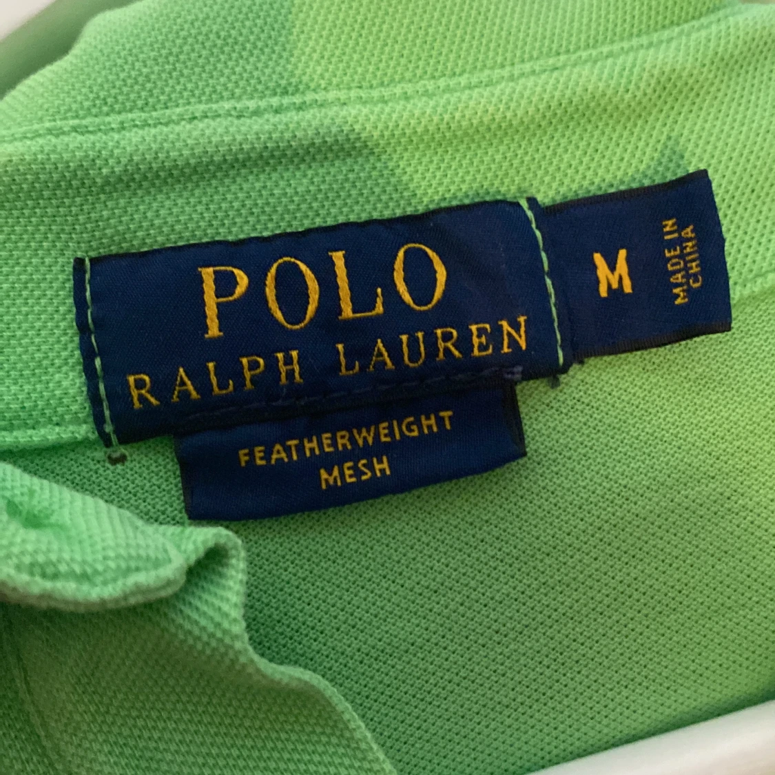 Fräsch grön t-shirt från Polo Ralph Lauren i storlek M. Klassisk pikémodell med krage, korta ärmar och två knappar vid halsen. Materialet är lätt mesh-bomull och har den ikoniska orangea Polo-loggan broderad på bröstet. Perfekt för chill dagar.
