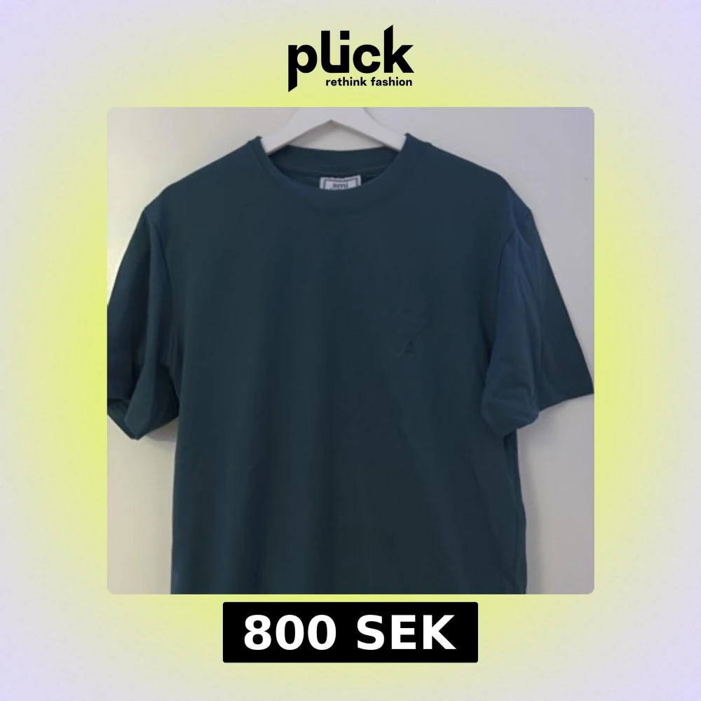 Snygg grön t-shirt från Ami Paris med en diskret broderad hjärtdetalj på bröstet. Perfekt för en avslappnad stil.