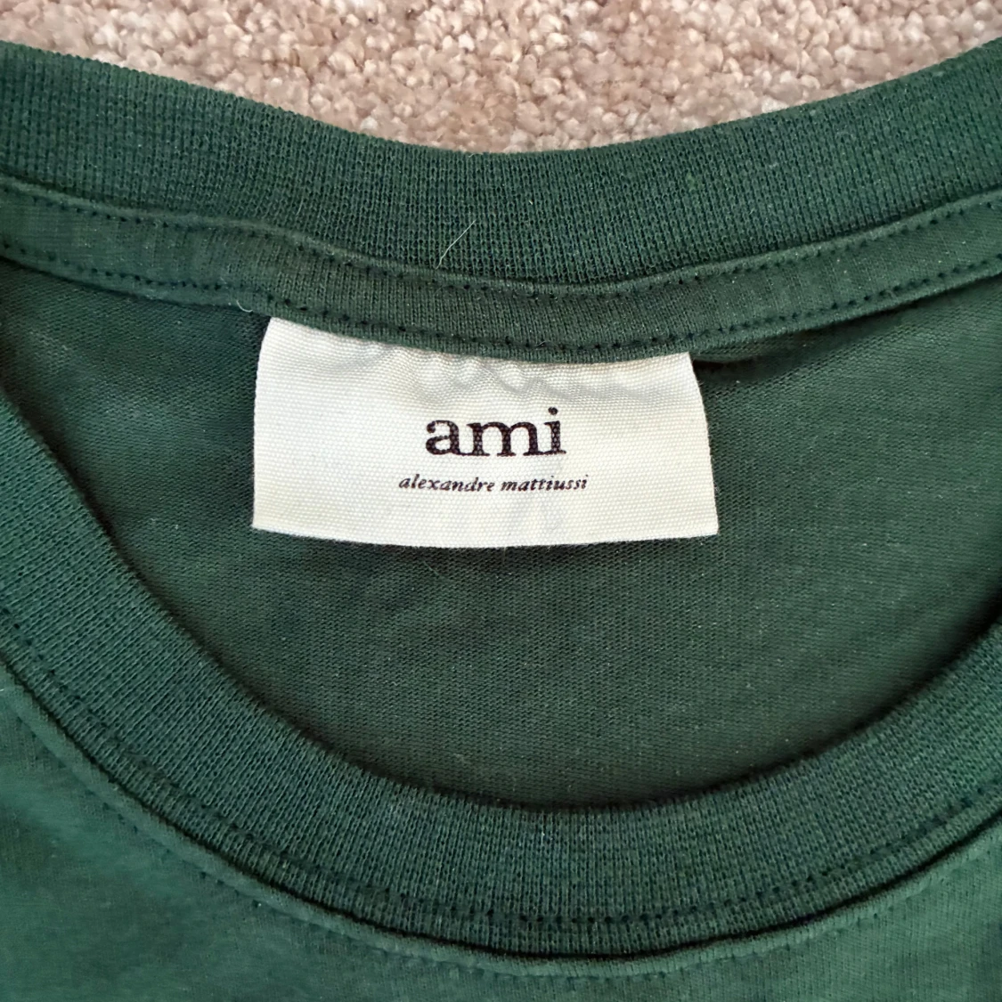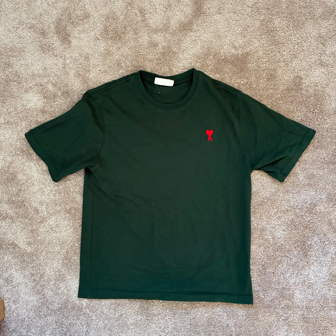 Snygg mörkgrön t-shirt från Ami Paris med klassisk passform och korta ärmar. Tillverkad i mjuk bomull. Skriv vid frågor eller funderingar✌️