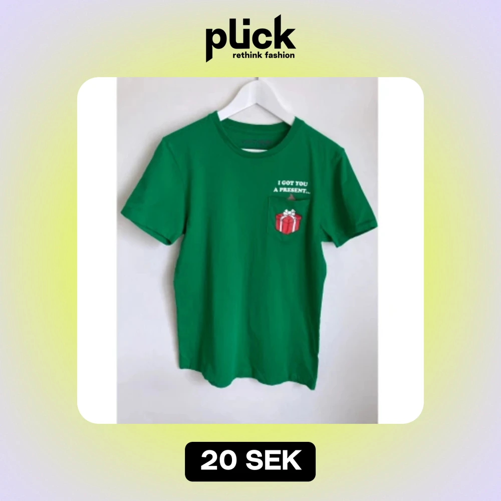 Skämtsam julig t-shirt. Mått i cm: bröstvidd 46; axelbredd 42; längd fram från axeln 66; ärmlängd 20.