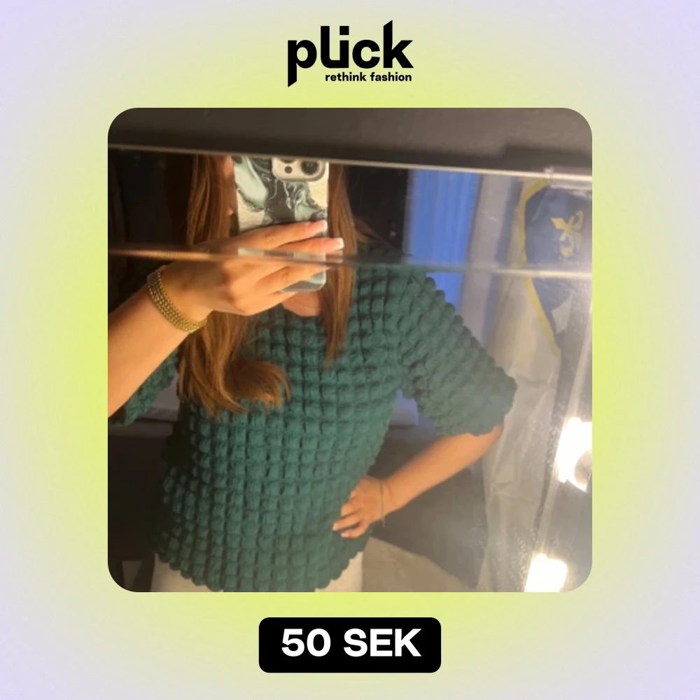 Säljer denna gröna trekvartsärmad tröja då den ej kommer till användning längre, jättefin tröja som även är i lite tjockare material🩷 ser mörkare ut i mörkt ljus💞
