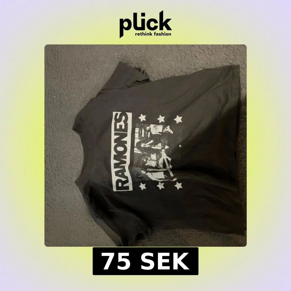 Säljer en svart t-shirt från H&M med Ramones-tryck i vitt. T-shirten har korta ärmar och en klassisk rund halsringning. Stl M, glömt bort vad jag köpte för men säljer för 75, men pris kan diskuteras!💗