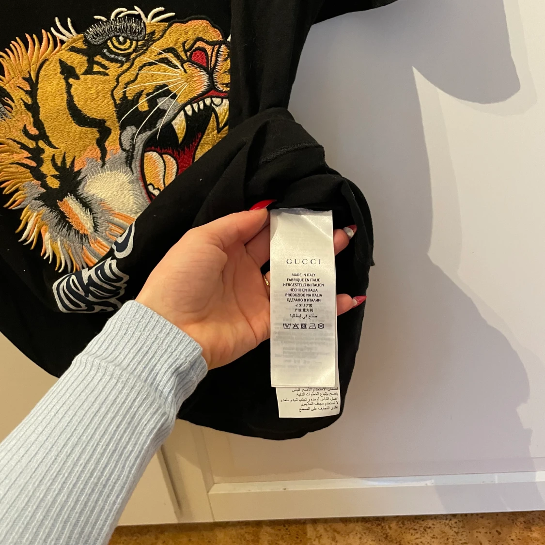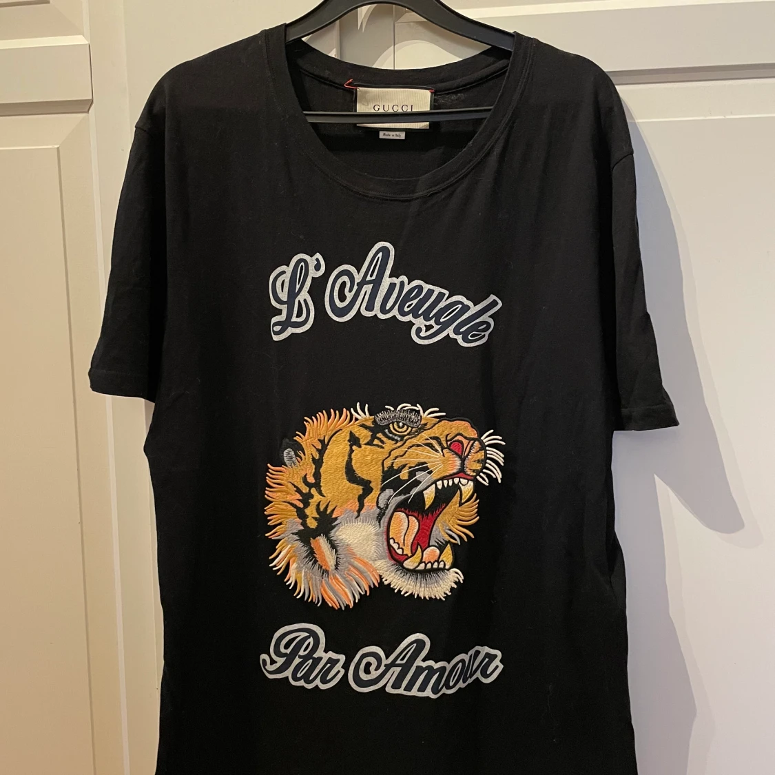 Herr T-shirt jag har dock använt den som klänning. Bra skick förutom att en tråd vid lappen sitter löst.