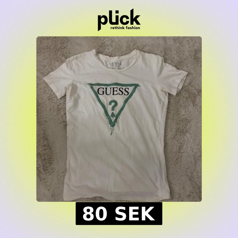 Vit t-shirt från Guess i bomull med klassisk grön trekantslogga och svart text framtill. Modellen är kortärmad och har en rund halsringning. Snygg och enkel design med tryck och diskret broderad text på insidan.