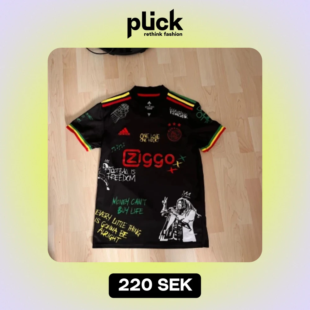 Säljer en svart fotbollströja Ajax x Bob Marley tröja. ny skick aldrig använd. kom privat om ni har frågor🙌👍