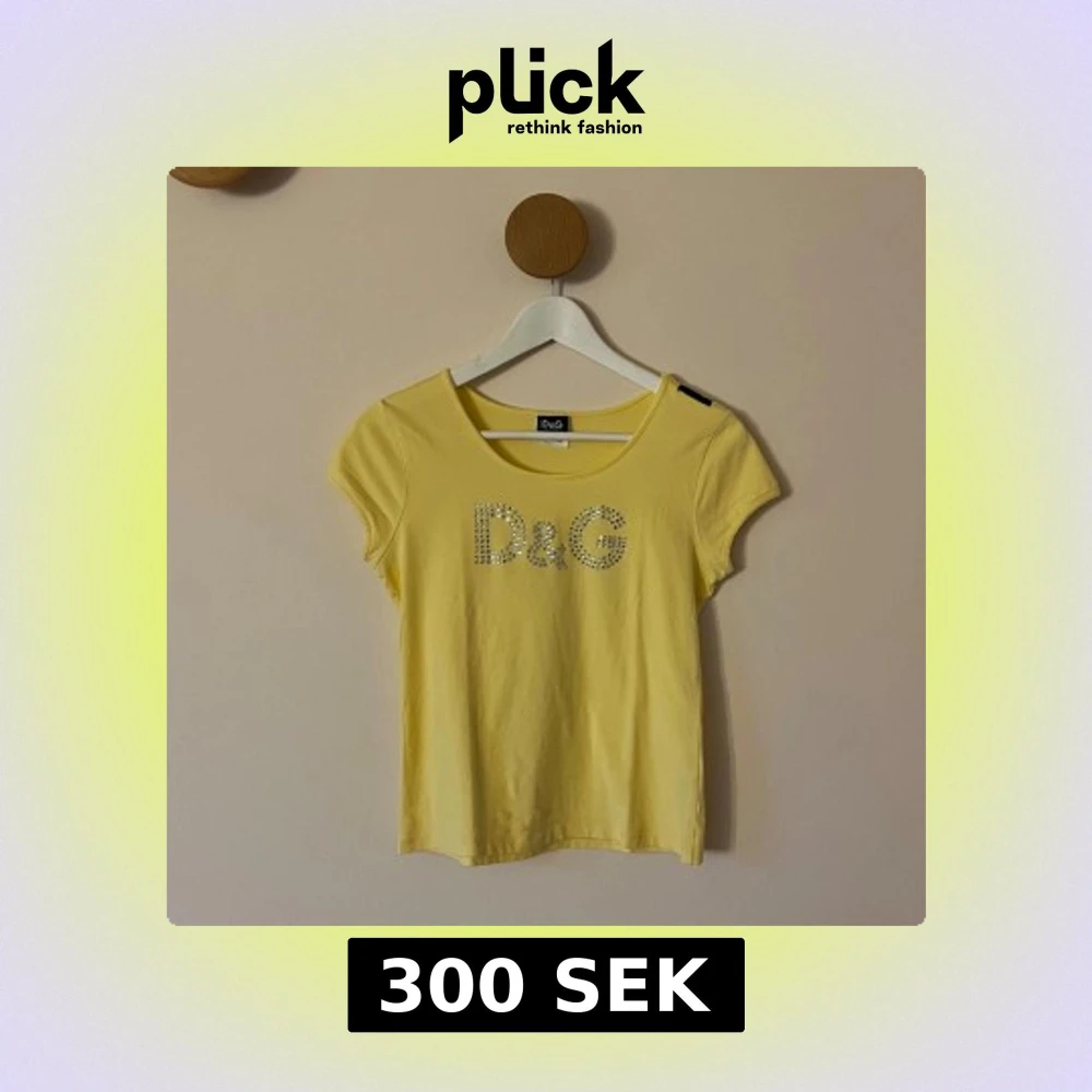 Gul t-shirt från D&G med korta ärmar och rund halsringning. Framsidan har en glittrig D&G-logga i strass. Tillverkad i mjuk bomull, perfekt för en trendig och färgglad look.