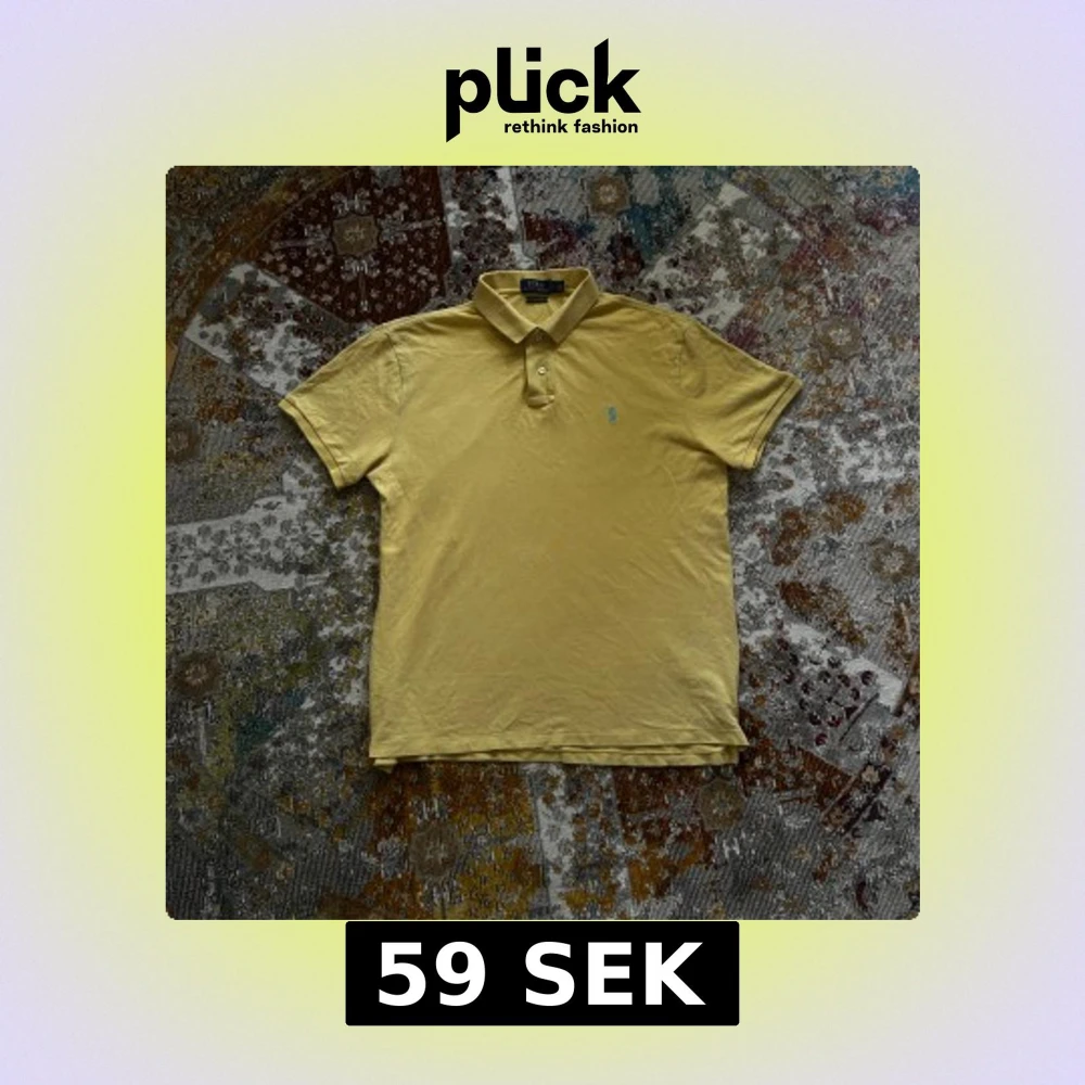 Snygg gul pikétröja från Polo Ralph Lauren med klassisk krage och två knappar framtill. Tröjan har korta ärmar och den ikoniska blå loggan broderad på bröstet. Perfekt för en avslappnad och stilren look. Har en fläck på baksidan