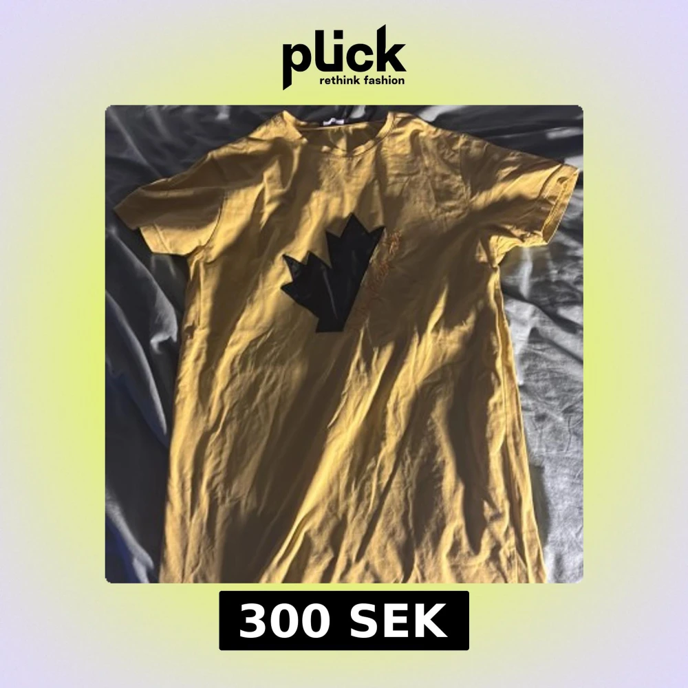 Säljer en gul t-shirt från Dsquared2 med ett svart grafiskt tryck på framsidan. T-shirten är kortärmad och tillverkad i bomull, perfekt för en avslappnad stil till sommaren för att fånga blickarna med den synliga färgen perfekt somma tröja.