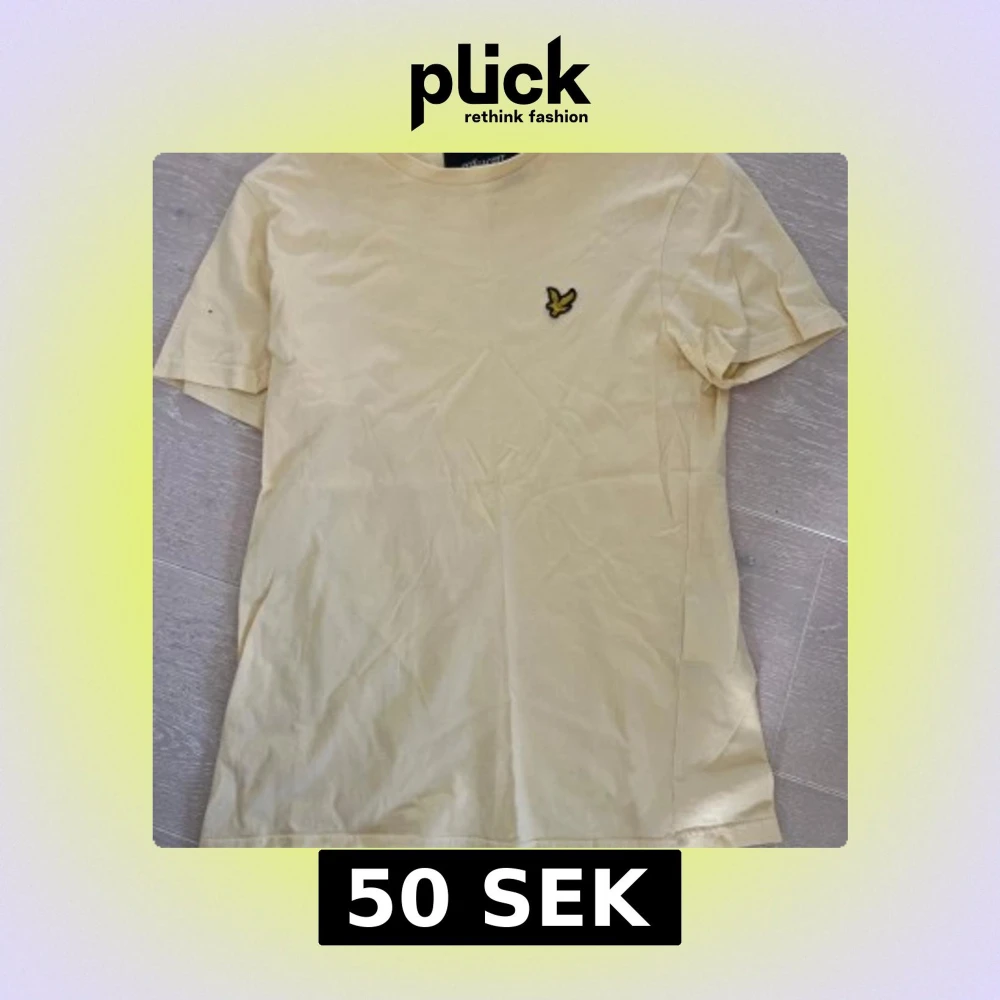 Säljer en gul t-shirt från Lyle & Scott med korta ärmar och en broderad logga på bröstet. Perfekt för en avslappnad stil. Passar bra till jeans eller shorts. Strl xs. Fint skick. Rök och djurfritt hem.