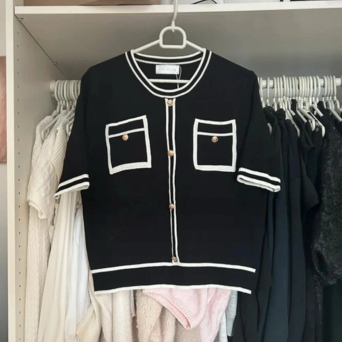 Super fin tröja med detaljer och guld knappar på, skönt material med lite lite prislappen kvar 💕 är storlek L men liten i storlek passar M