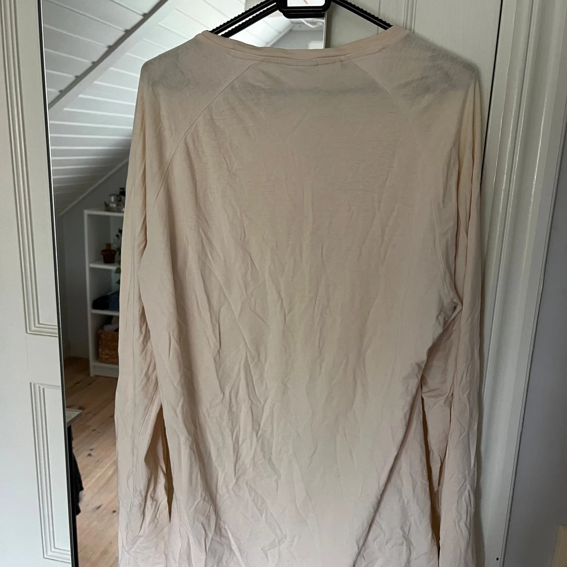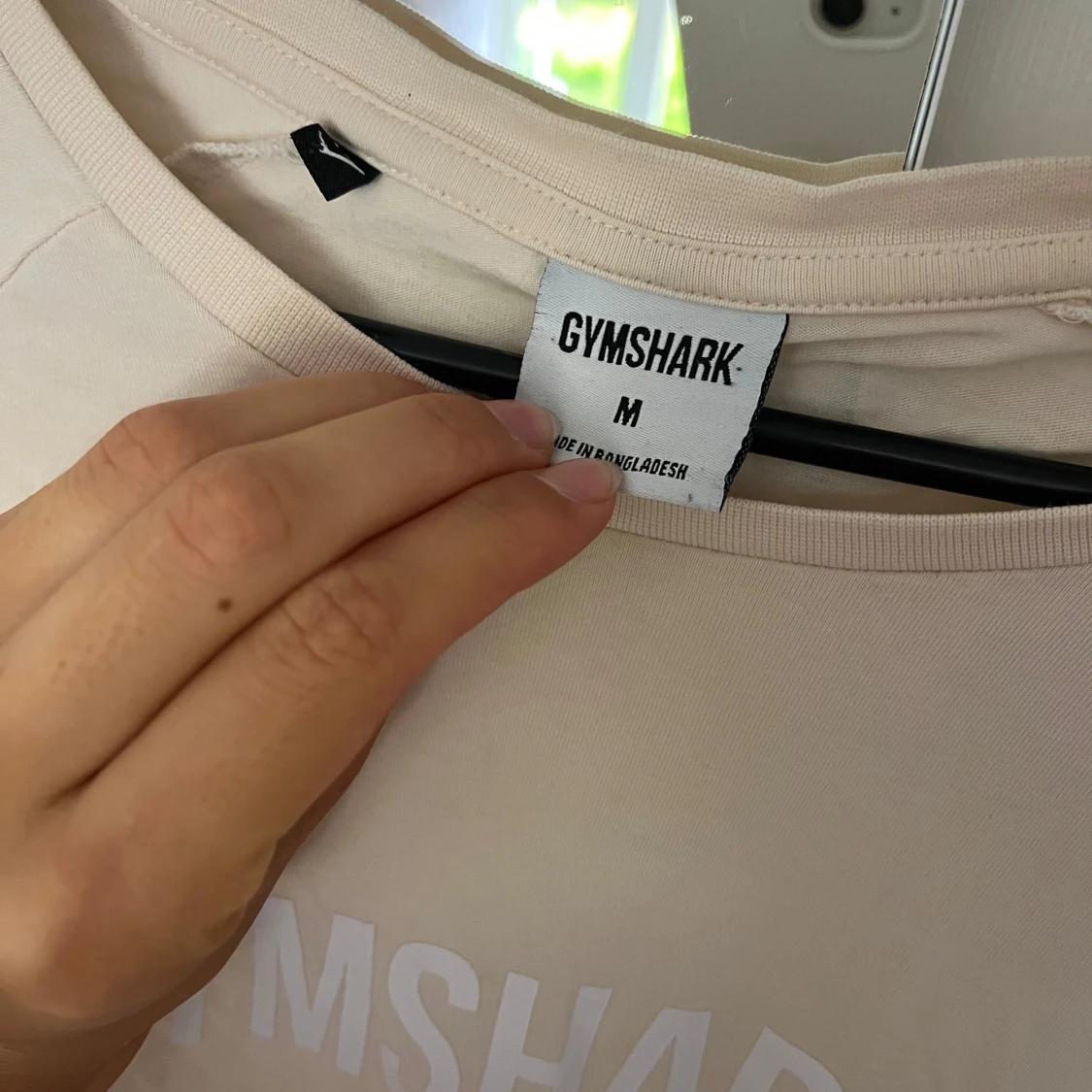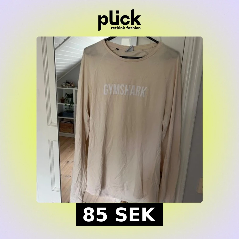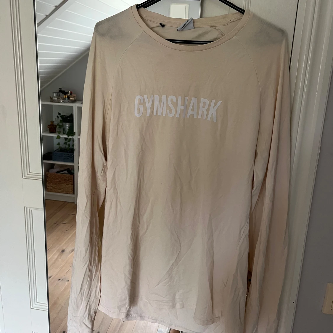 Säljer en beige långärmad tröja från Gymshark i storlek M. Herrstorlek så oversize på mig som bär S men perfekt o skön till gymmet, beige/aprikos färg