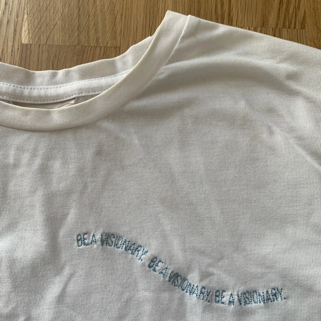 Be a visionary T-shirt från gymshark i färgen vit, strl S, använd ett fåtal gånger, den är i okej skick för den är lite missfärgad uppe vid halsen, svårt att fånga på bild men syns lite irl