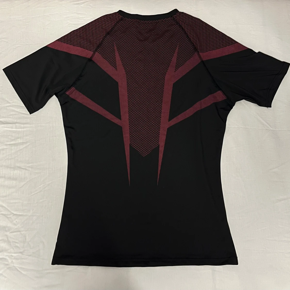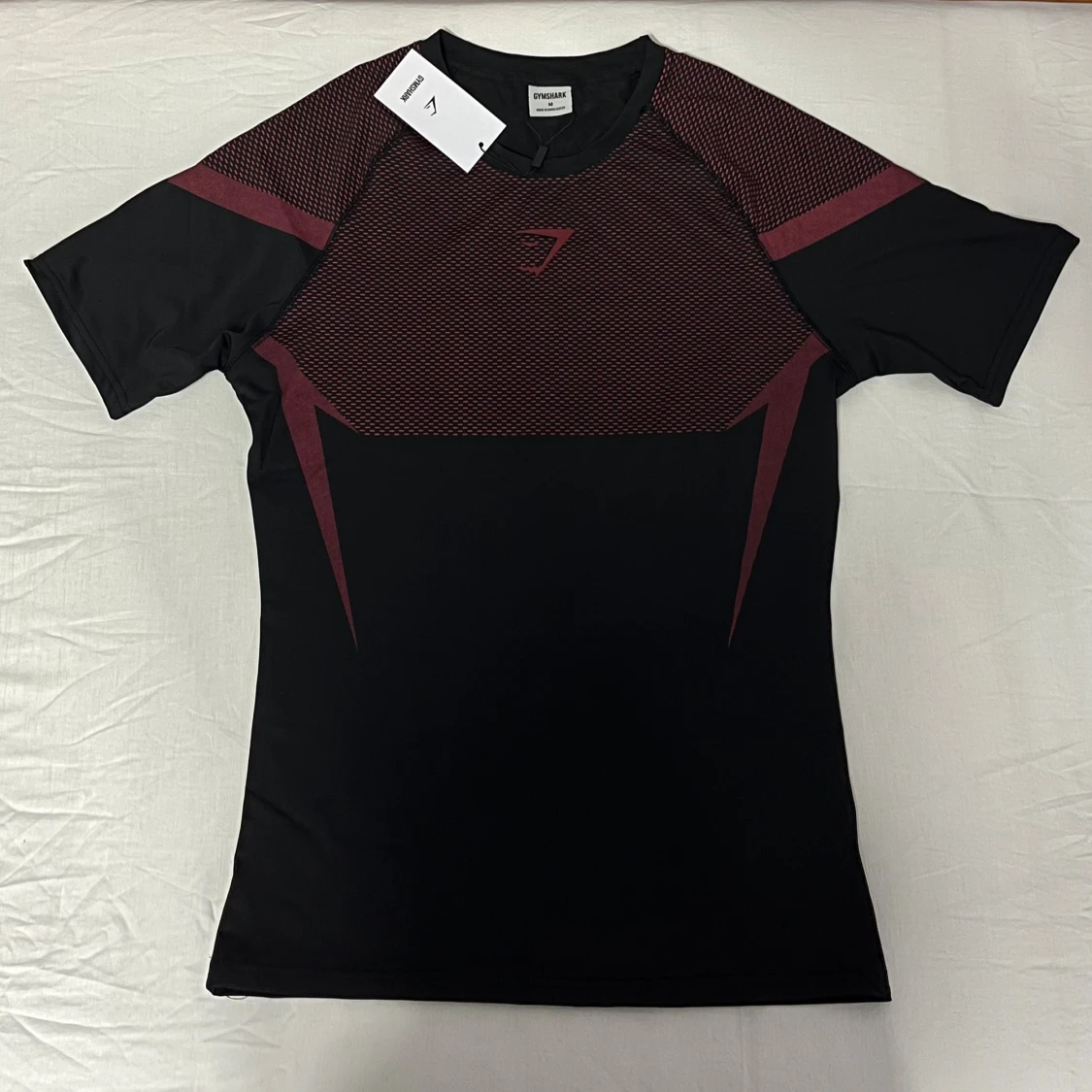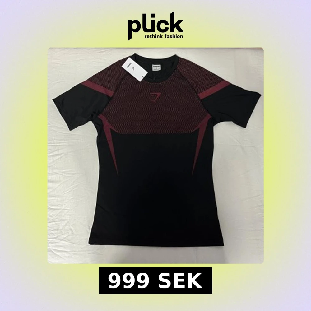 Sportig svart t-shirt från Gymshark med vinröda detaljer och mönstrad ovandel. Tight passform och tillverkad i ett lätt, stretchigt syntetmaterial som andas. Perfekt för dig som vill ha en snygg och funktionell tränings-tisha med cool design. Ett till ett. Denna tröjan är limited edition, alltså går det inte att få tag på liknande t-shirts. Vid någora frågor är det bara att skriva 🤗.