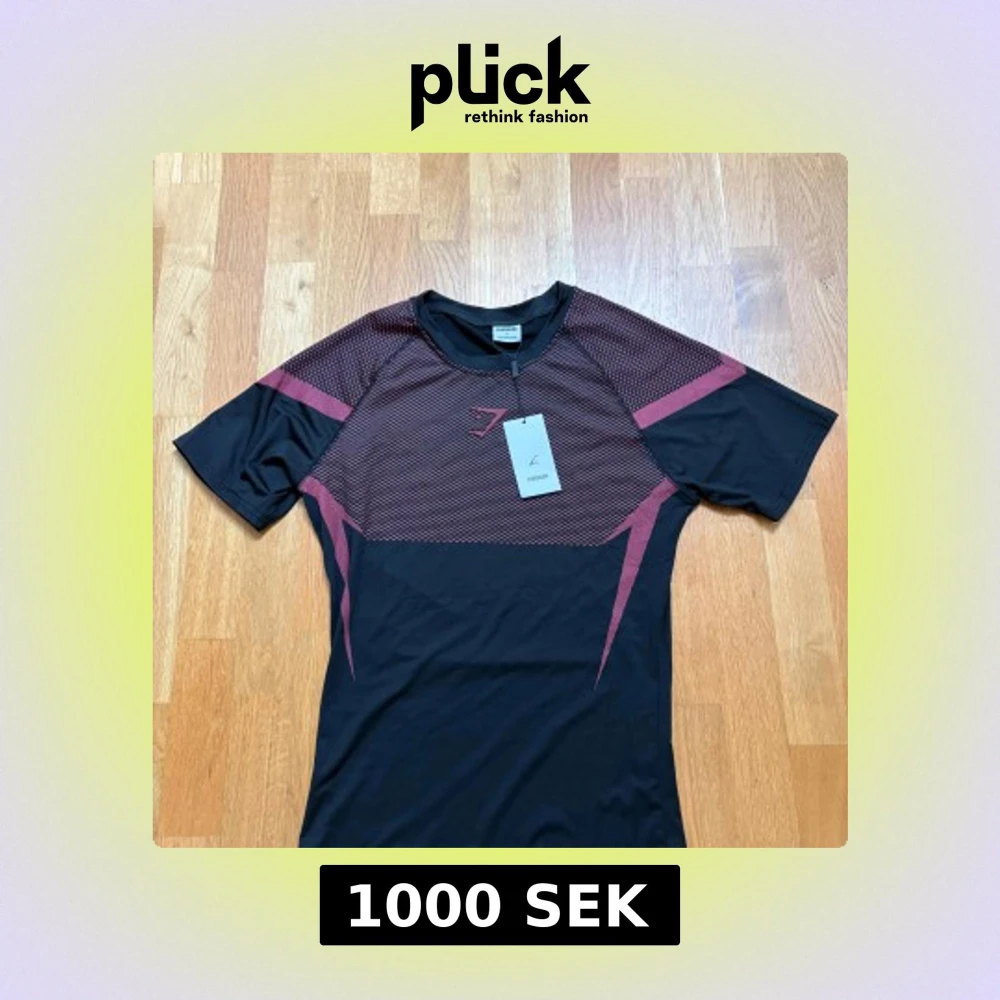 Sportig t-shirt från Gymshark i svart med röda detaljer och mönstrad framsida. Snyggt tryck med Gymshark-loggan på bröstet. T-shirten har korta ärmar och är gjord i ett lätt och stretchigt polyestermaterial som passar perfekt för träning. Modern och cool design med grafiska linjer. Det är en limited edition tröja. Kom gärna med bud