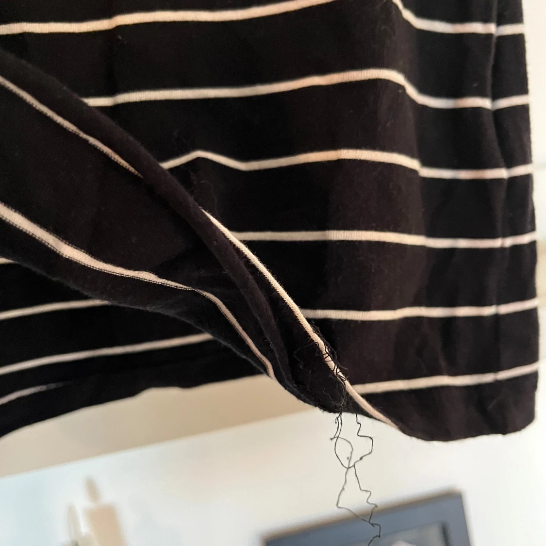 Storlek xs. Tråden har gått upp en bit i nederkant men inget som stört mig. Svart & vit