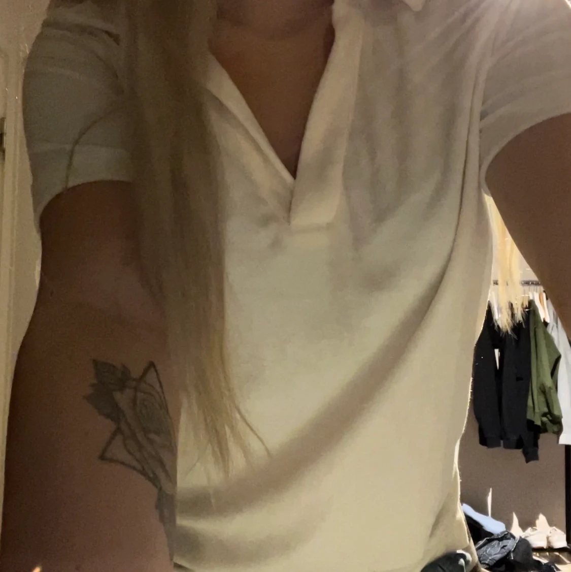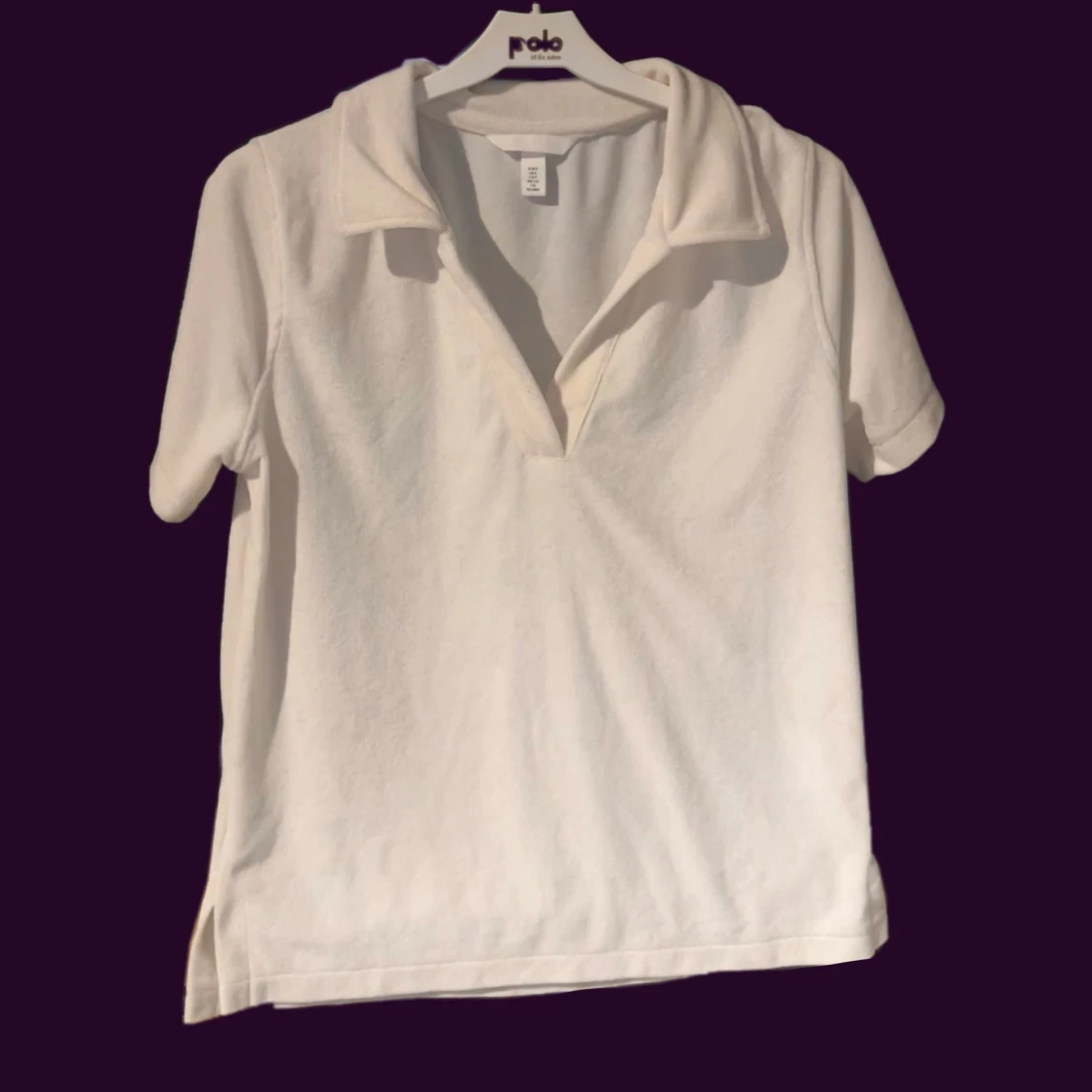 Väldigt mysig piké t-shirt som passar med intill allt🤍 passformen är rätt avslappnad men man ser häller inte ut som en påse🤩