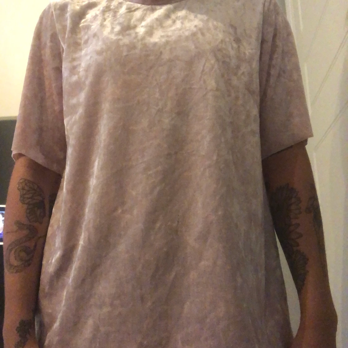 Rosa sammets T-shirt från hm. Relativt loose dit. Nyskick. Kan skickas mot fraktavgift eller hämtas i Uppsala/västerås ❤️