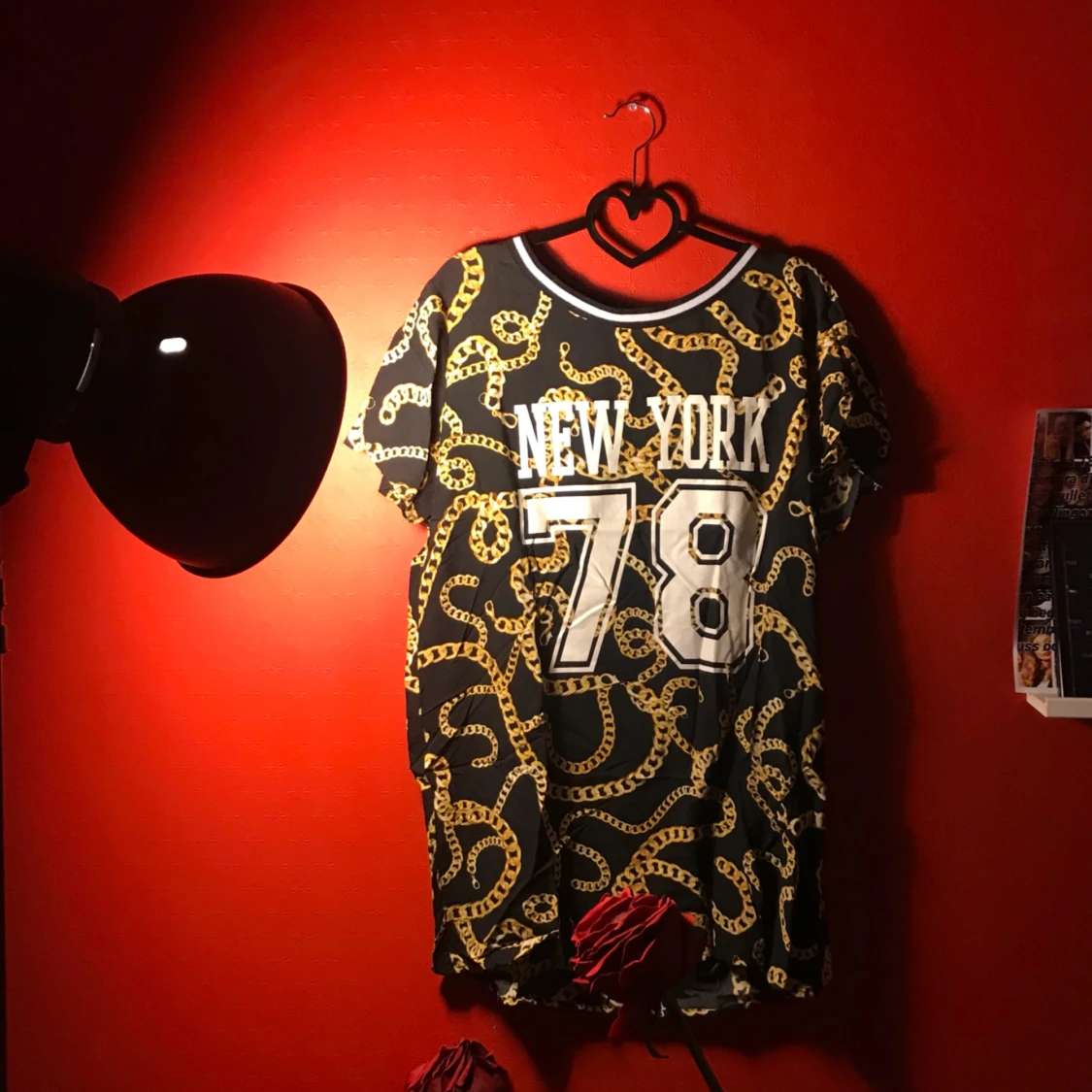 Större tröja från H&M i strl 42. Använd fåtal gånger som klänning till badet. Bra skick! 75 kr frankt ingår inte!
