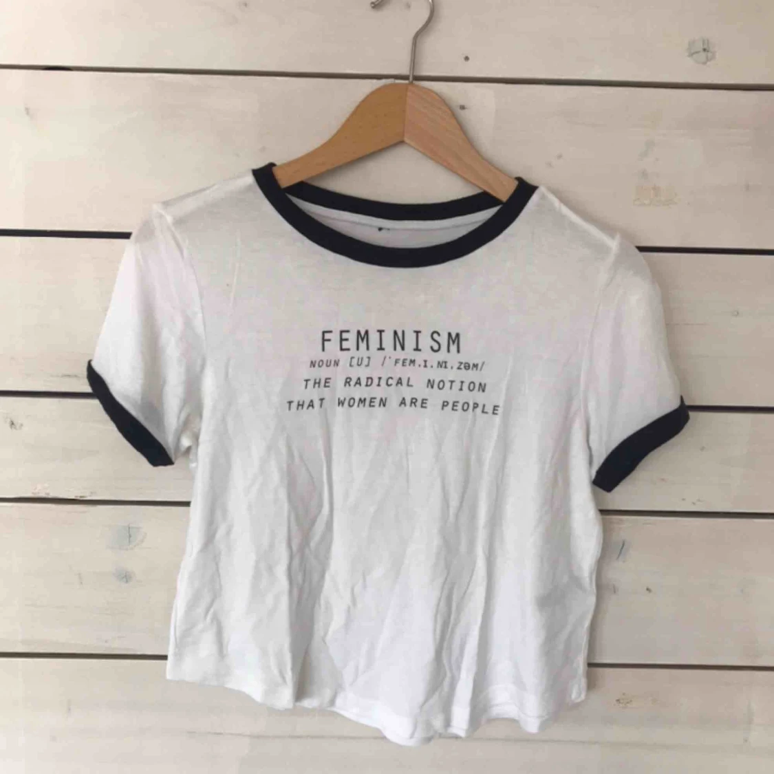 FEMINISM CROP TOP Vit t-shirt med svart text, strl M