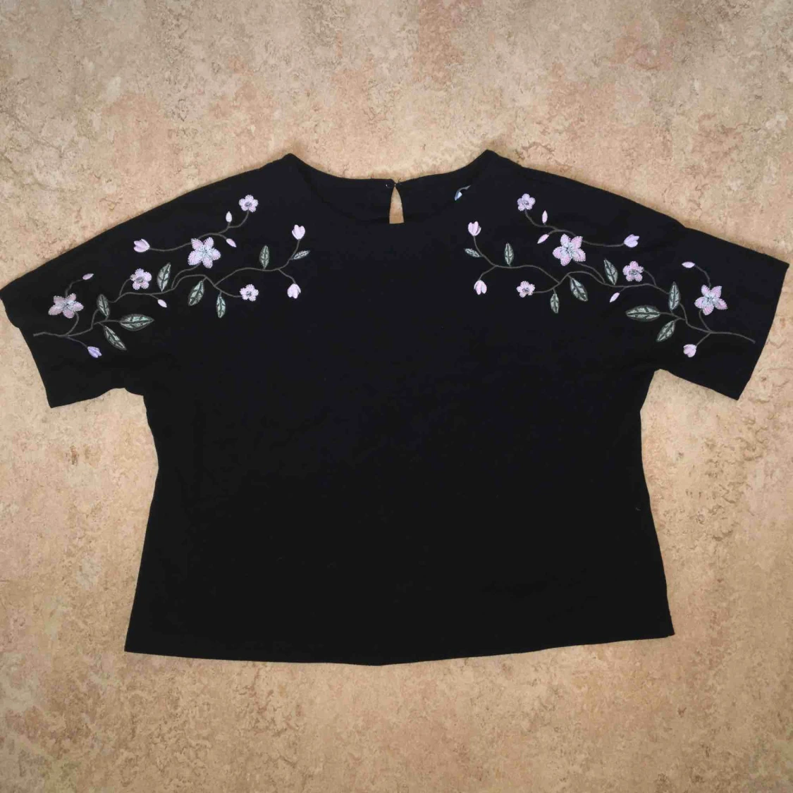 T-shirt med mönster på ärmarna från H&M. Kan mötas upp alt. skicka.