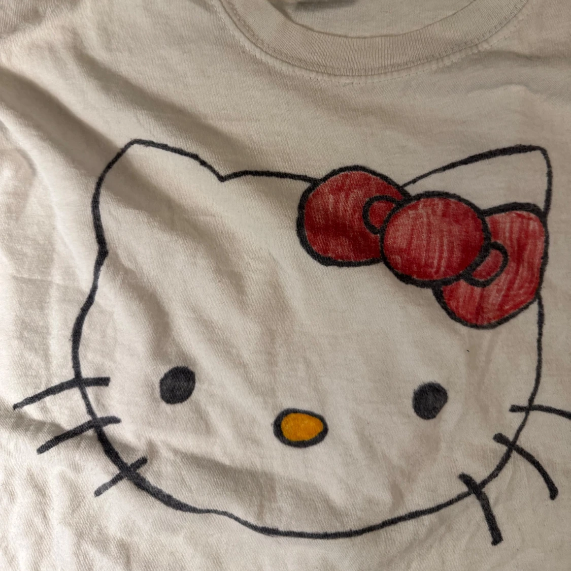 Har målat hello Kitty själv len det håller utmärkt i tvätten!
