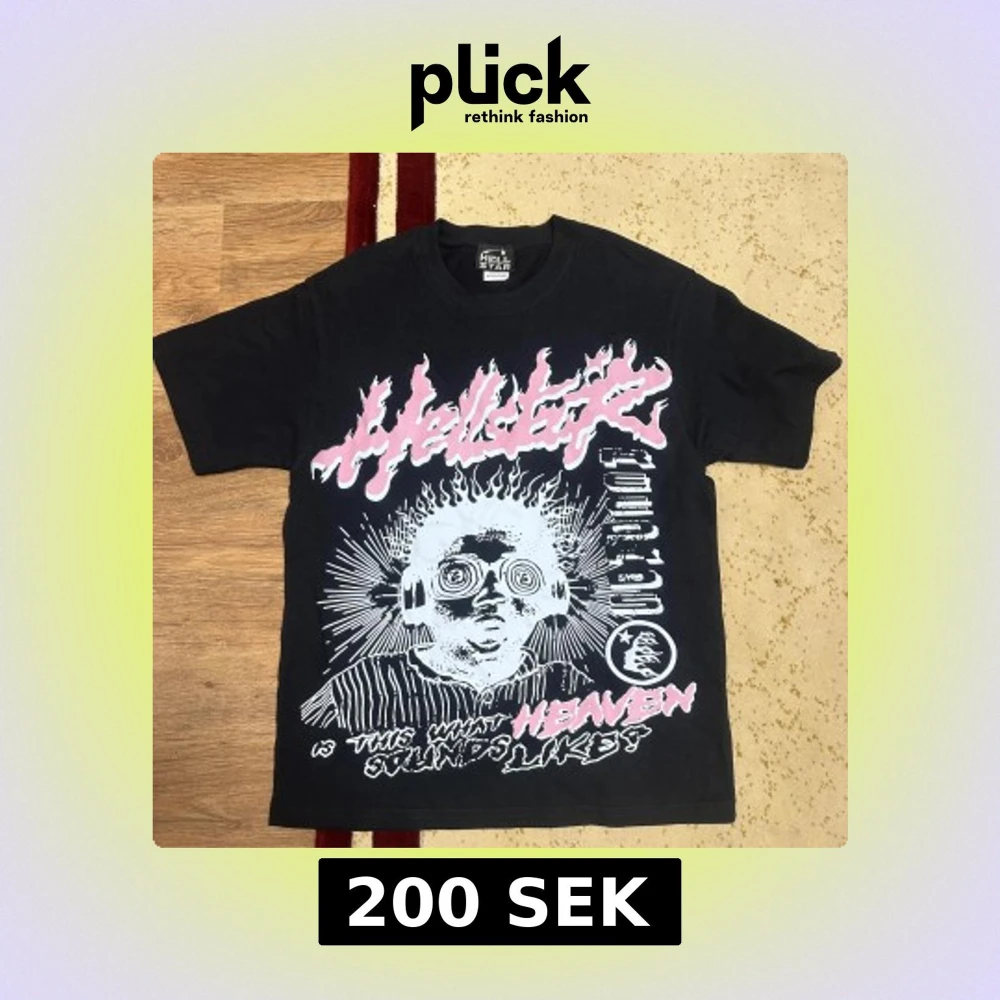 Svart t-shirt från Hellstar med stor graphic print framtill i vitt och rosa, samt Hellstar Records-tryck på ryggen. T-shirten har en klassisk passform med korta ärmar och rund hals. Materialet är mjuk bomull, perfekt för dig som gillar bold streetwear.
