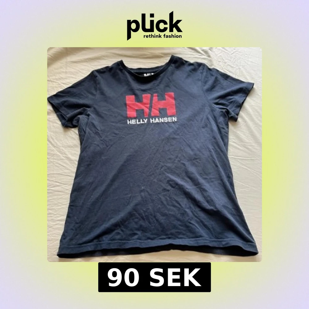 Snygg svart t-shirt från Helly Hansen i storlek M. Framtill finns en stor röd HH-logga och vit text. T-shirten har rund hals och korta ärmar, tillverkad i mjuk bomull. Perfekt för dig som gillar sportiga och stilrena plagg med tydlig branding.