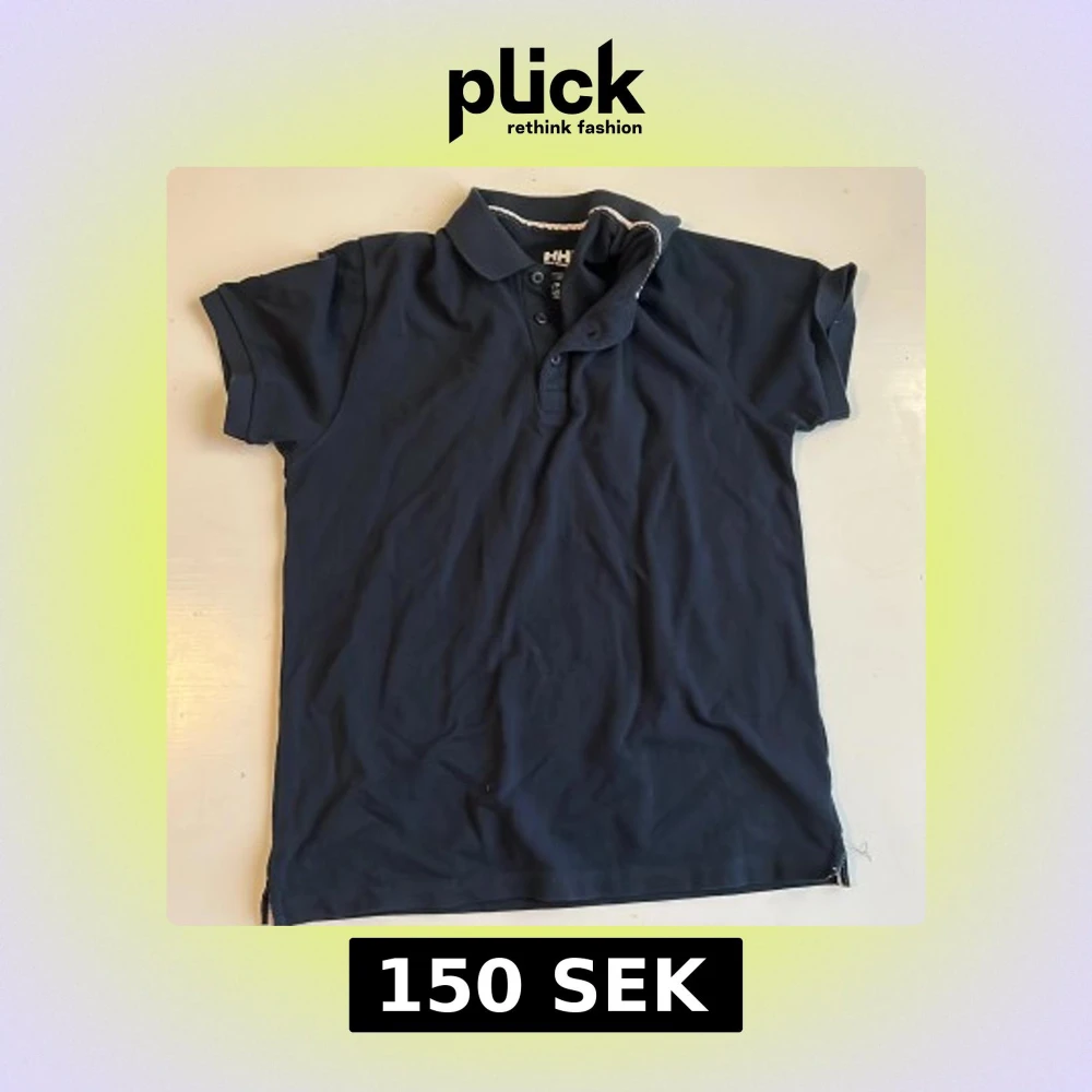 Säljer en stilren mörkblå pikétröja från Helly Hansen. Tröjan har korta ärmar och en klassisk krage med knappar. Perfekt för en avslappnad look.