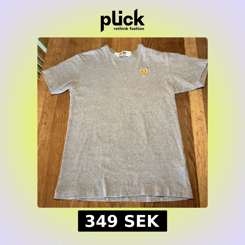 Säljer en grå t-shirt från Comme des Garçons Play med det ikoniska broderade hjärtat i guld på bröstet. T-shirten har klassisk passform och är tillverkad i mjuk bomull. Perfekt för en stilren och avslappnad look.