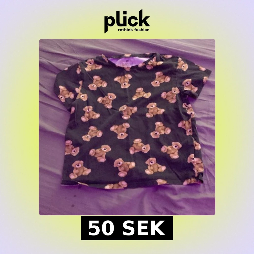 Svart t-shirt från H&M med gulligt all-over mönster av bruna nallebjörnar. Klassisk rund hals och korta ärmar. Perfekt för dig som gillar lekfulla prints och vill sticka ut lite extra. Gjord i mjuk bomull som är skön mot huden.