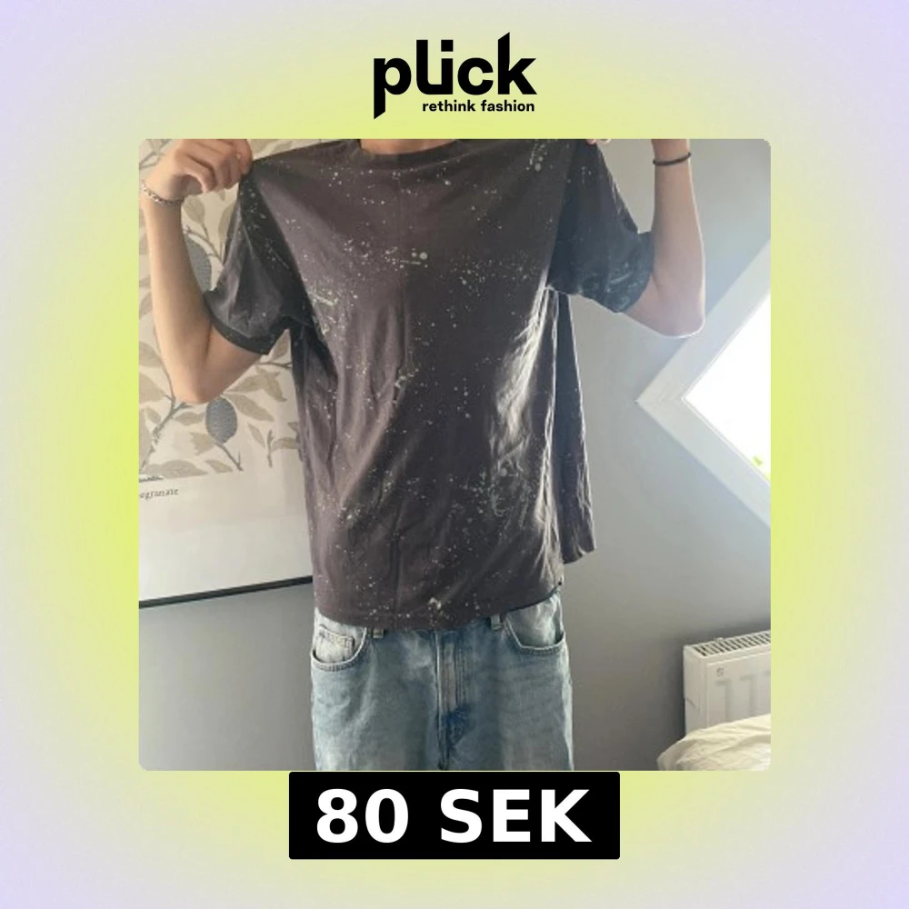Svart t-shirt från H&M med coolt grönt stänkmönster över hela plagget. Klassisk rund hals och korta ärmar. Tillverkad i mjuk bomull som är skön mot huden. Perfekt för dig som gillar streetstyle och vill sticka ut lite extra.