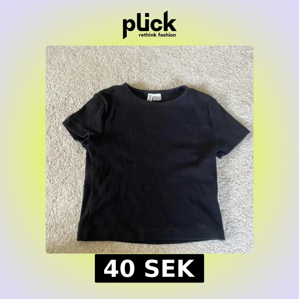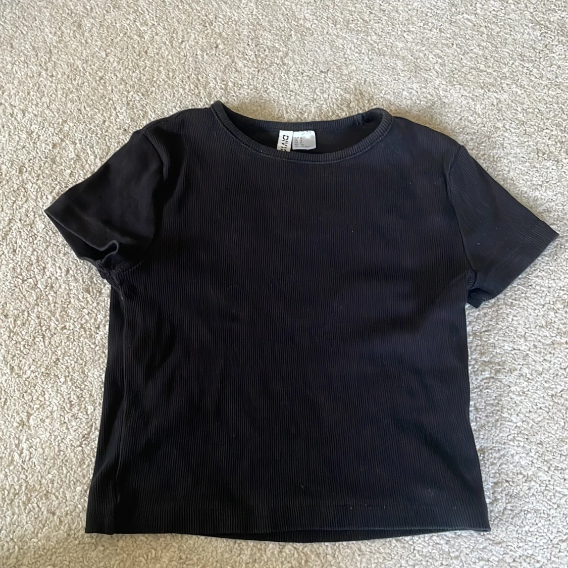 Säljer en stilren svart ribbad t-shirt från H&M.